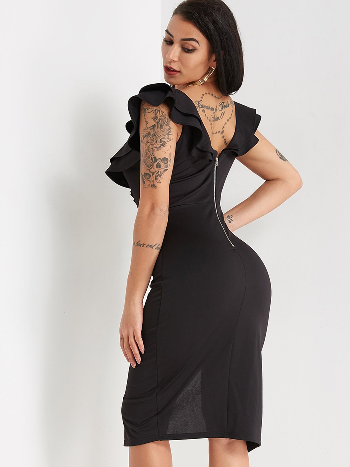 Detail:Zip Back Design,Backless Design,Slit Design