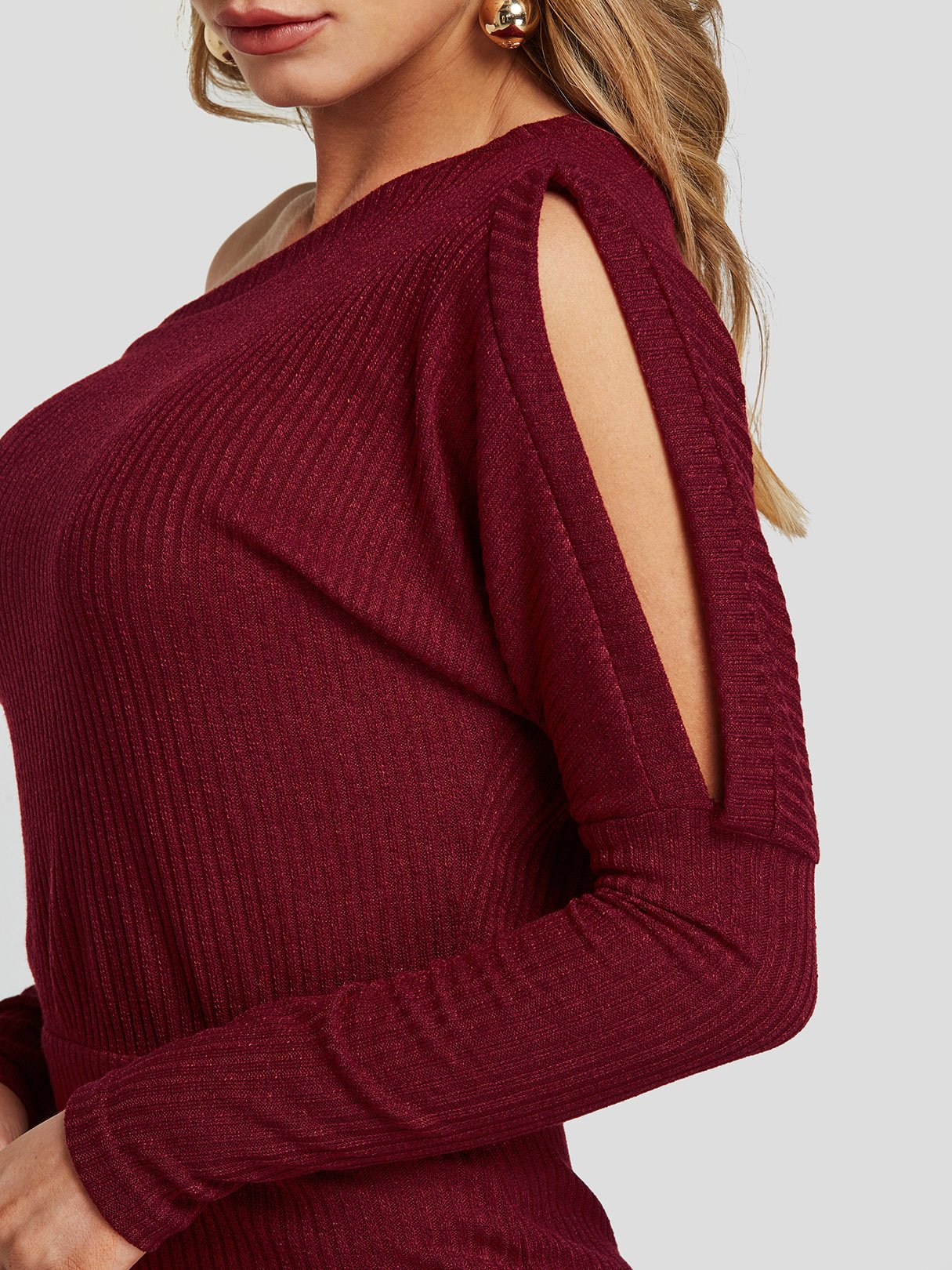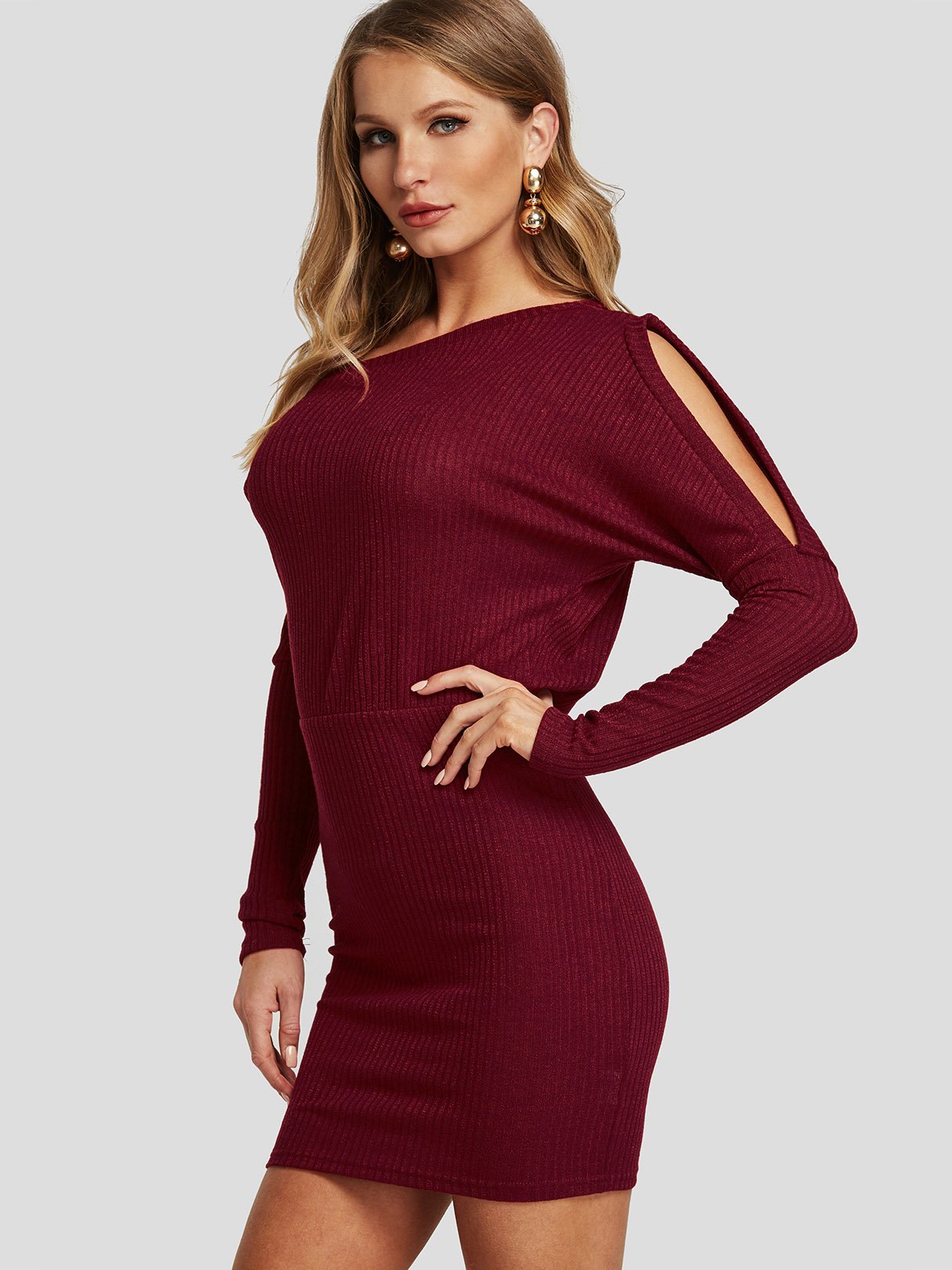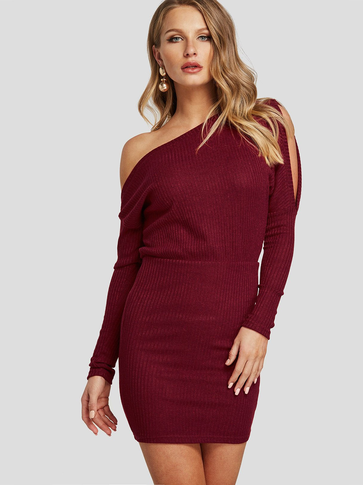 Burgundy One Shoulder Long Sleeve Cut Out Bodycon Dresses