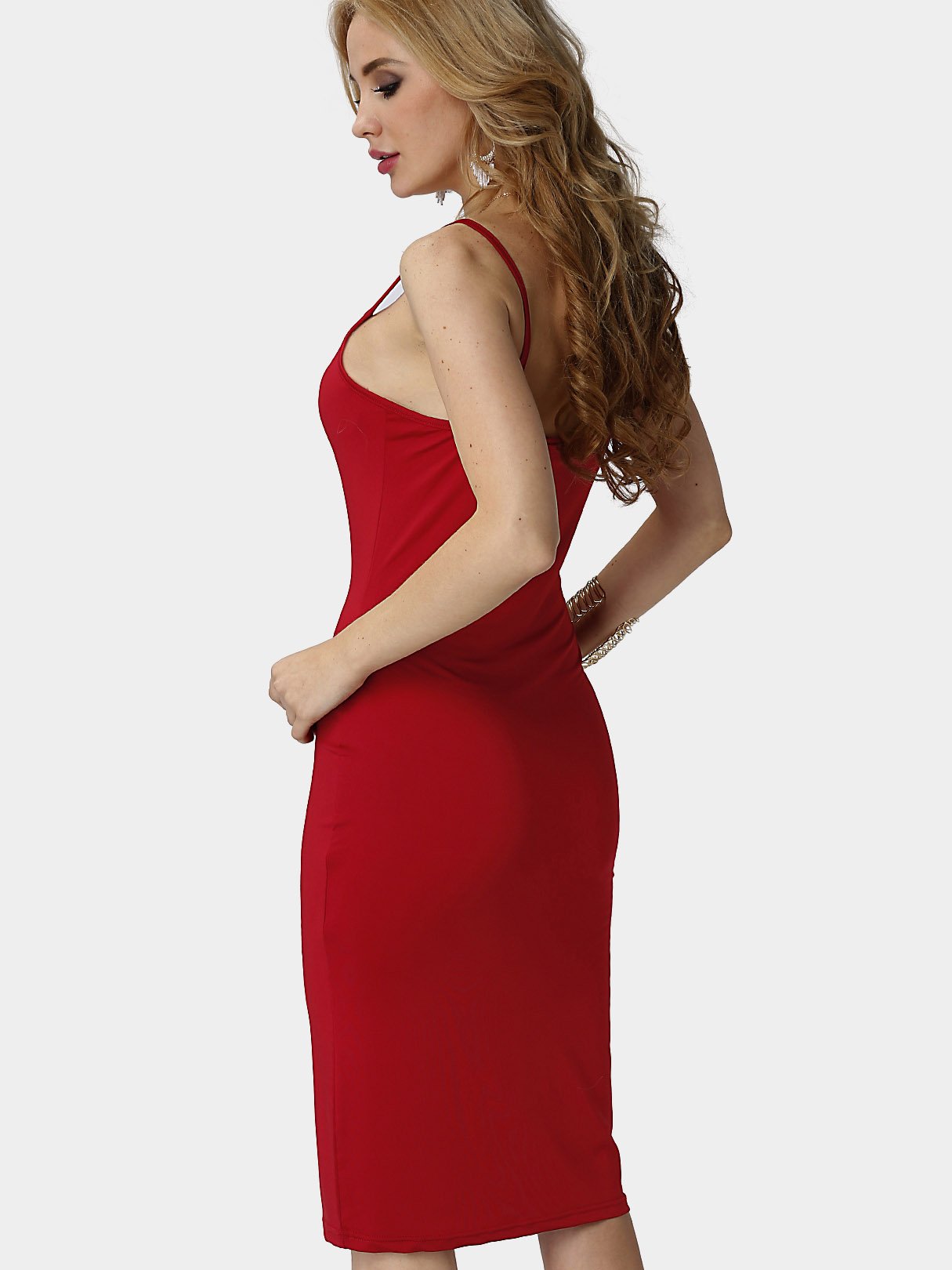 Burgundy Round Neck Sleeveless Spaghetti Strap Dresses