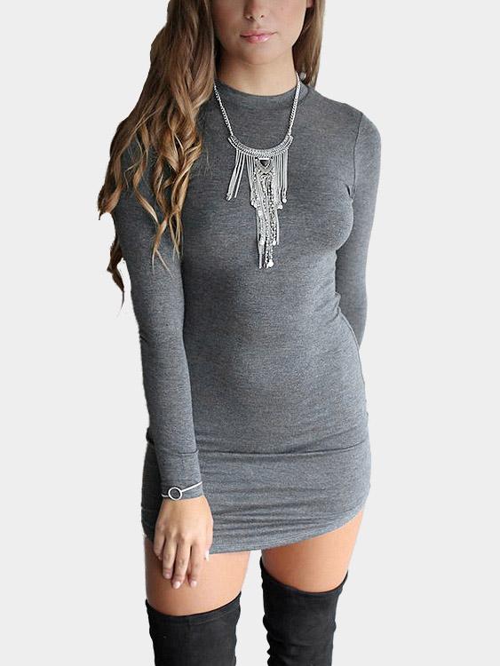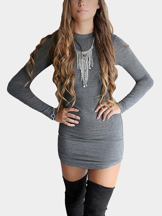 Dark Grey Crew Neck Long Sleeve Plain Bodycon Dresses
