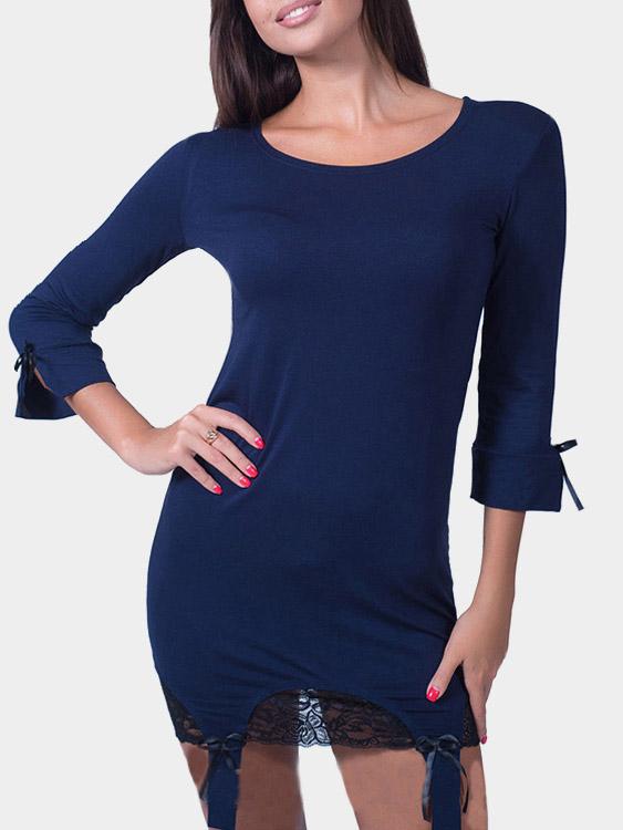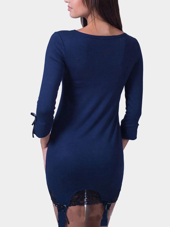 Navy Round Neck 3/4 Sleeve Lace Dresses