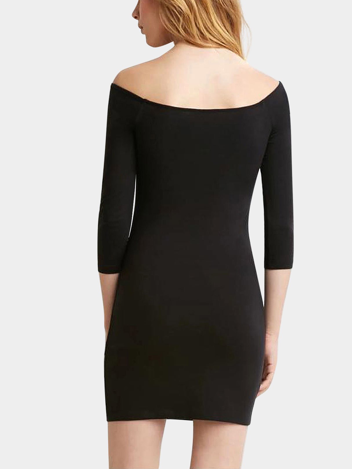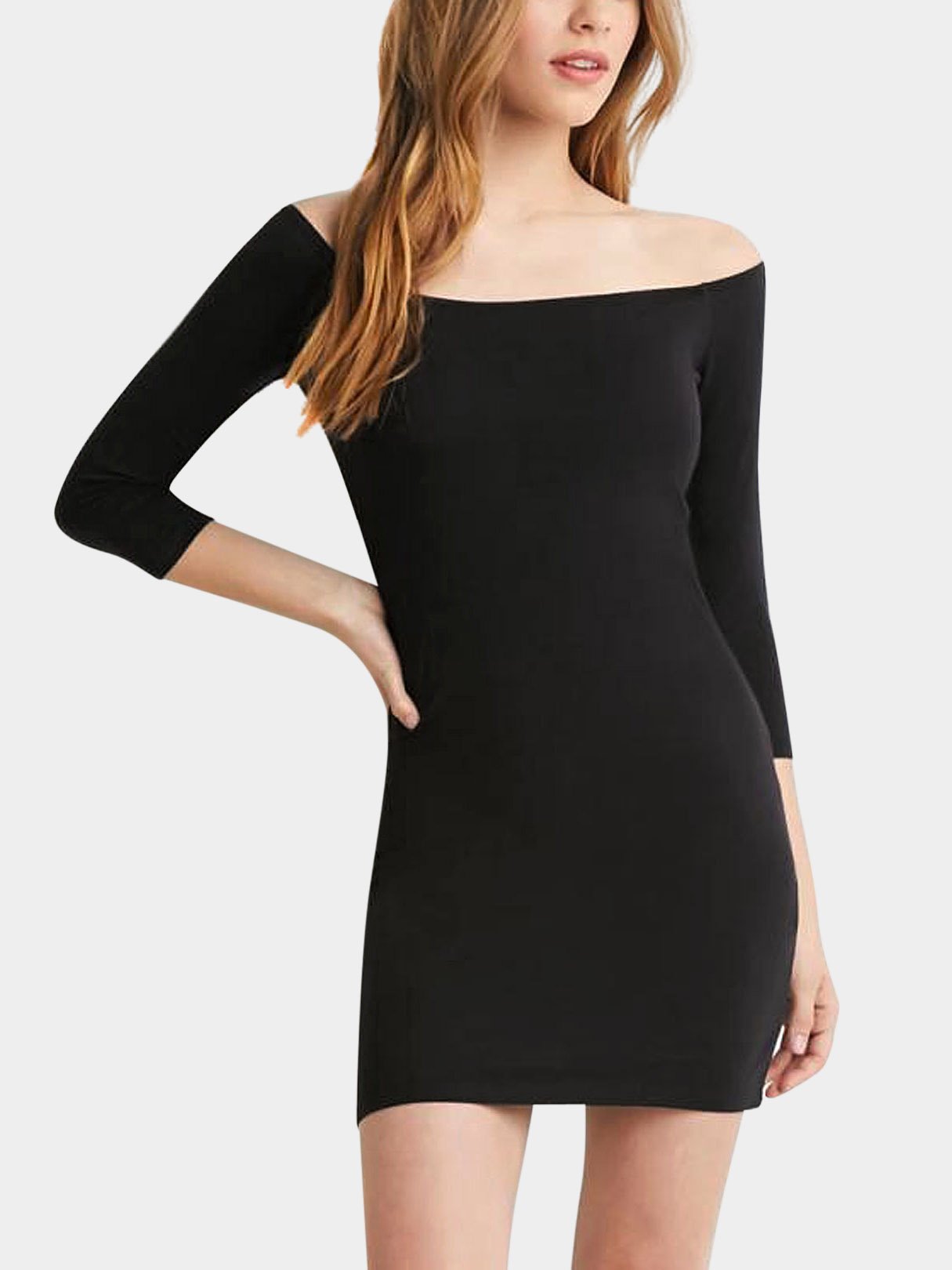 Off The Shoulder Plain 3/4 Length Sleeve Black Dresses