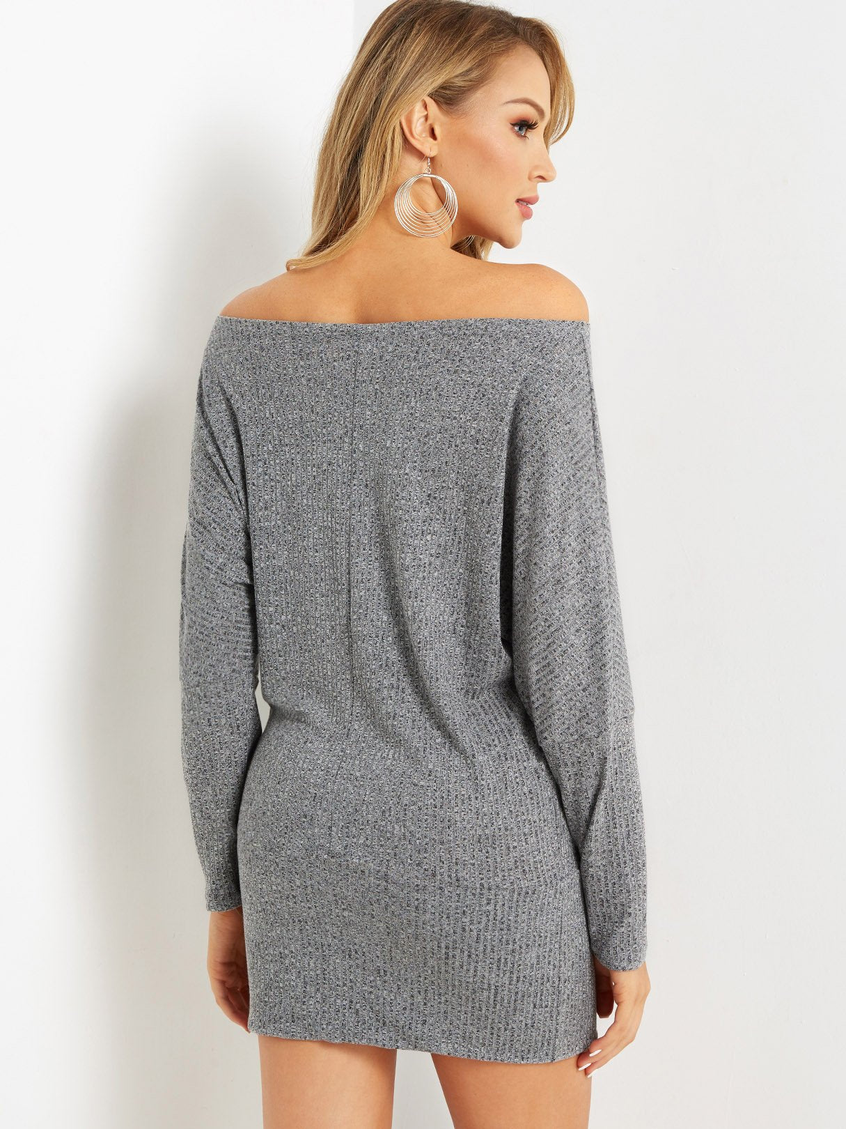 One Shoulder Long Sleeve Bodycon Hem Grey Dresses