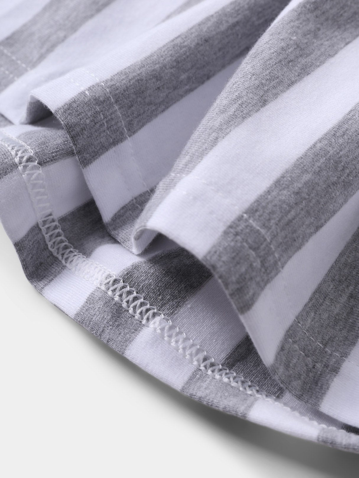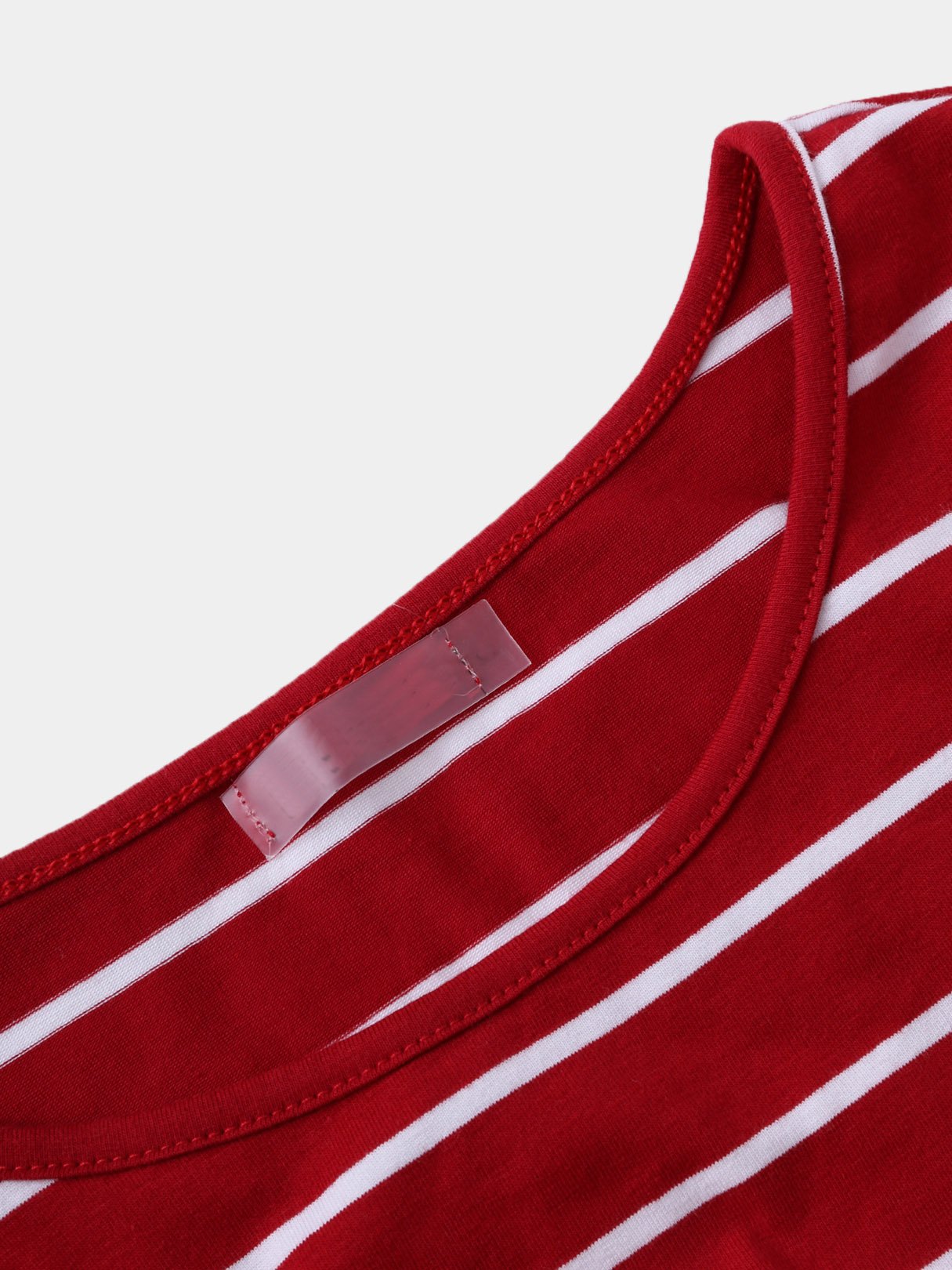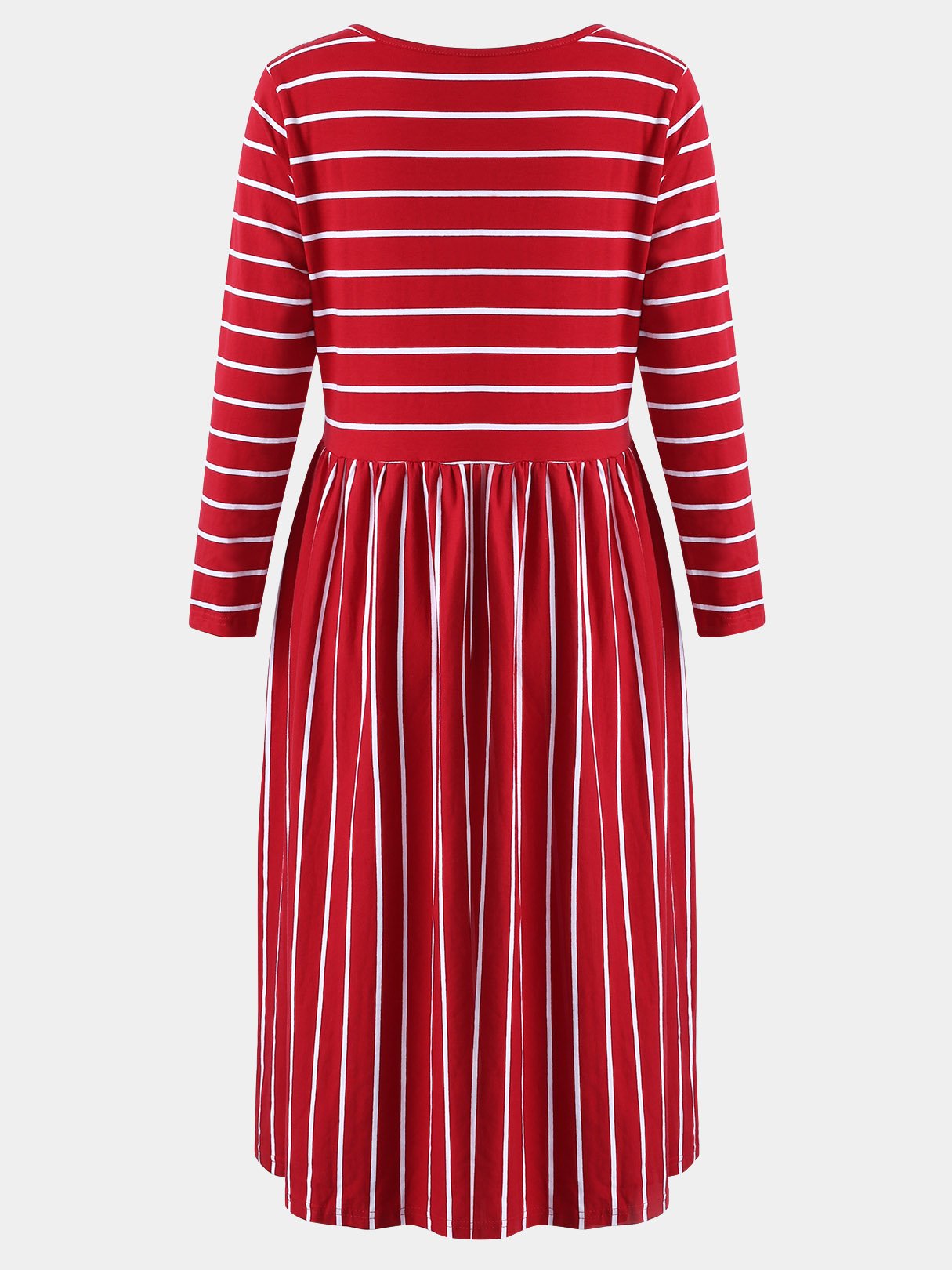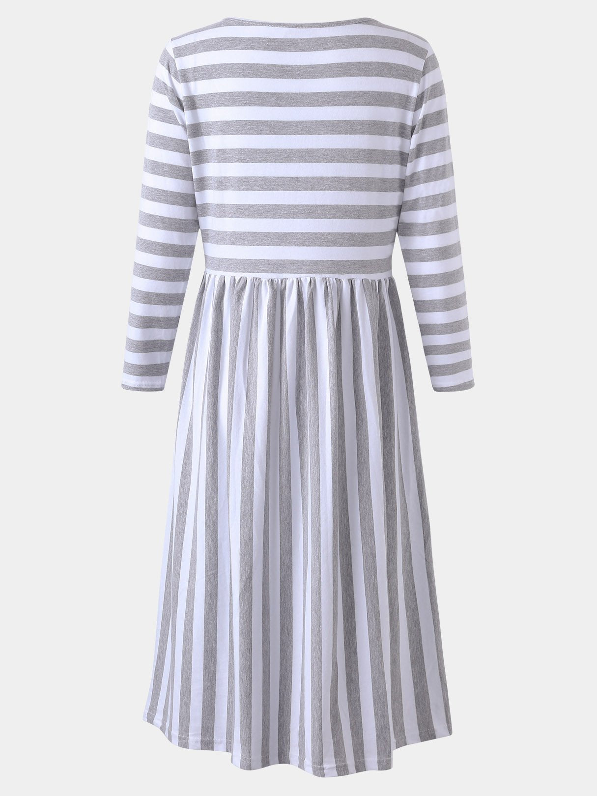 Round Neck 3/4 Length Sleeve Stripe Ruffle Hem Dresses