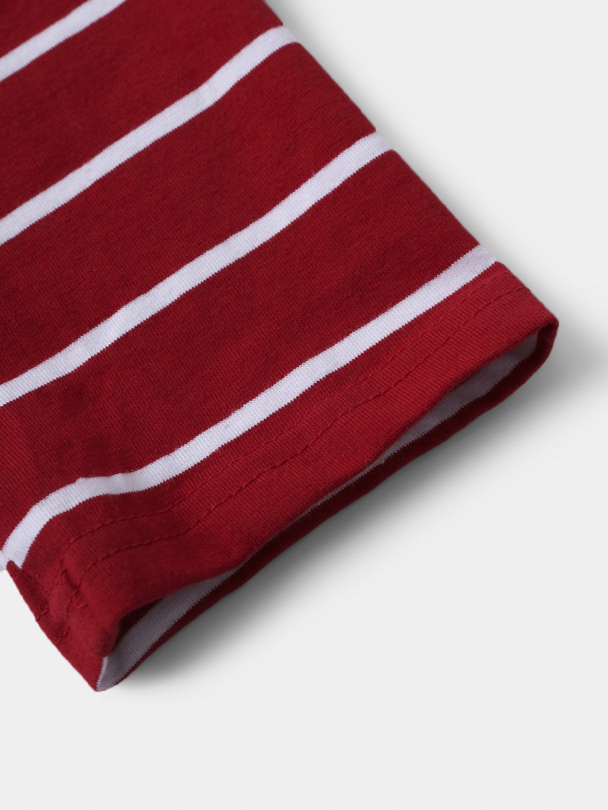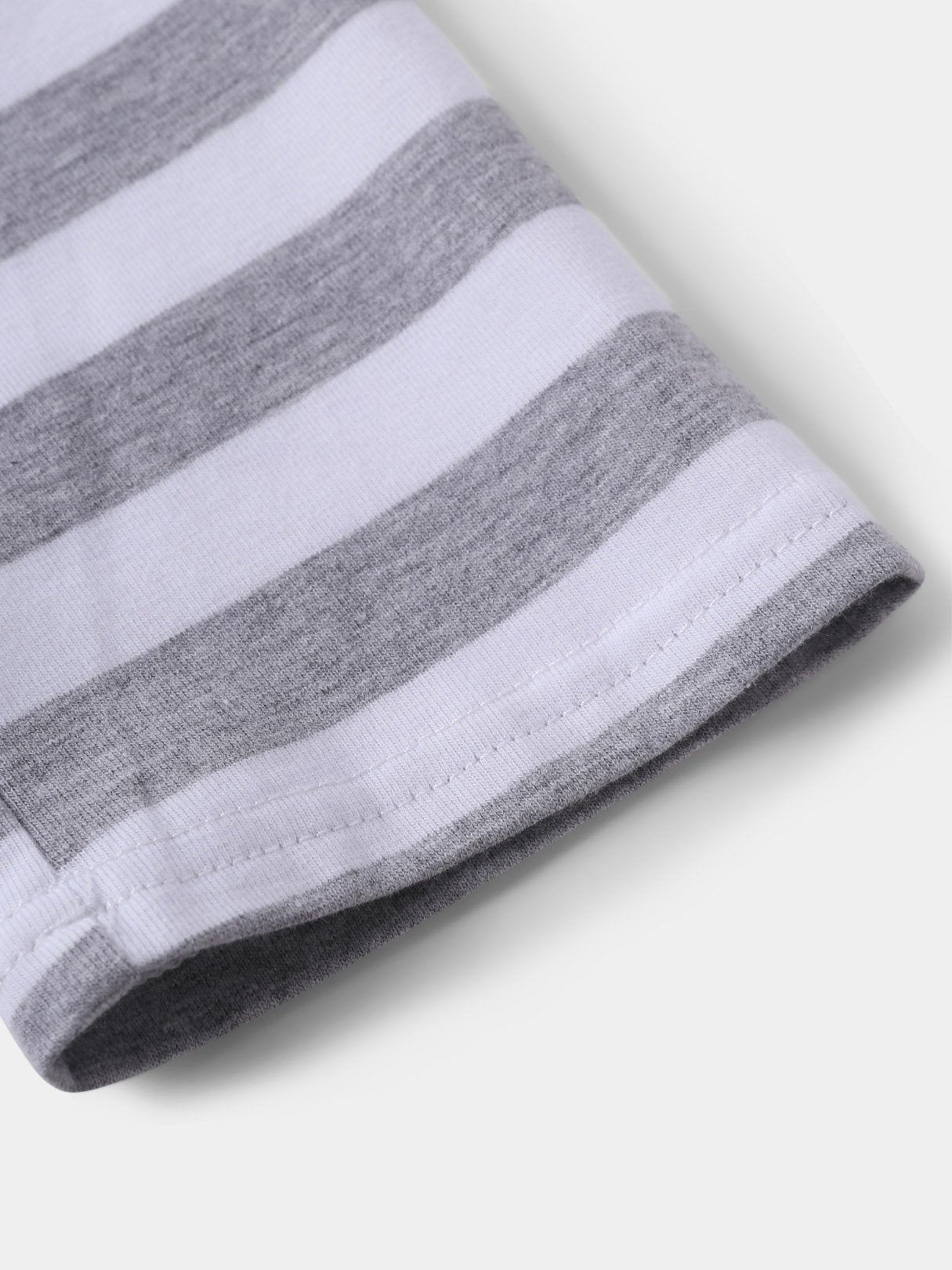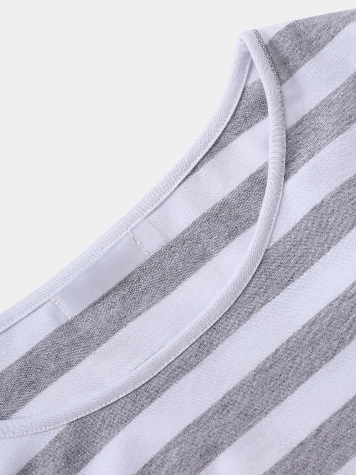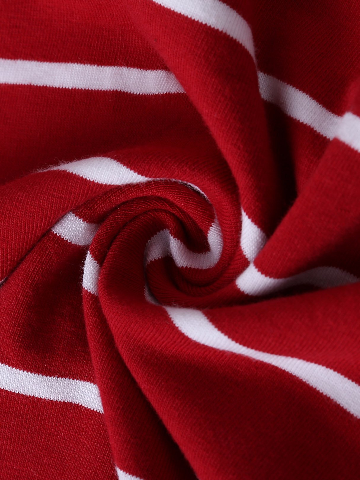 Round Neck 3/4 Length Sleeve Stripe Ruffle Hem Dresses