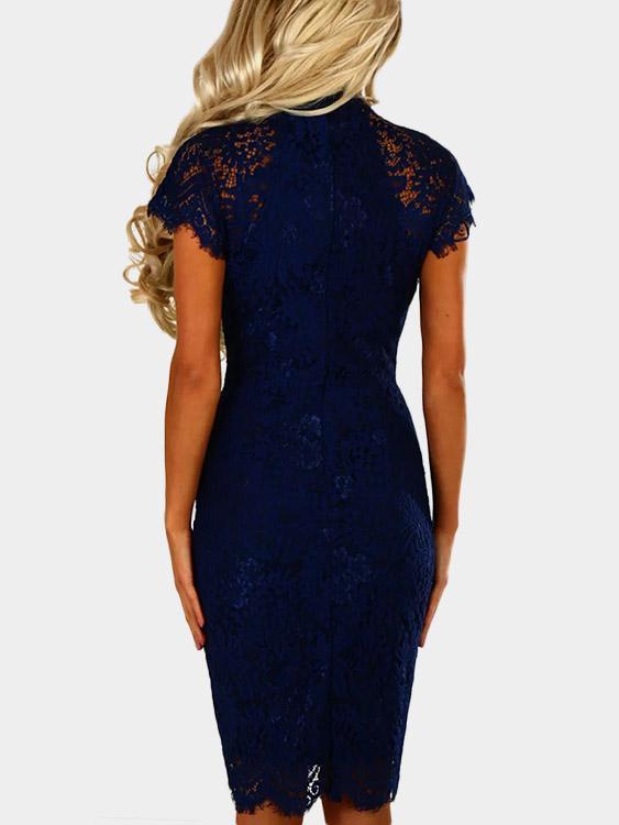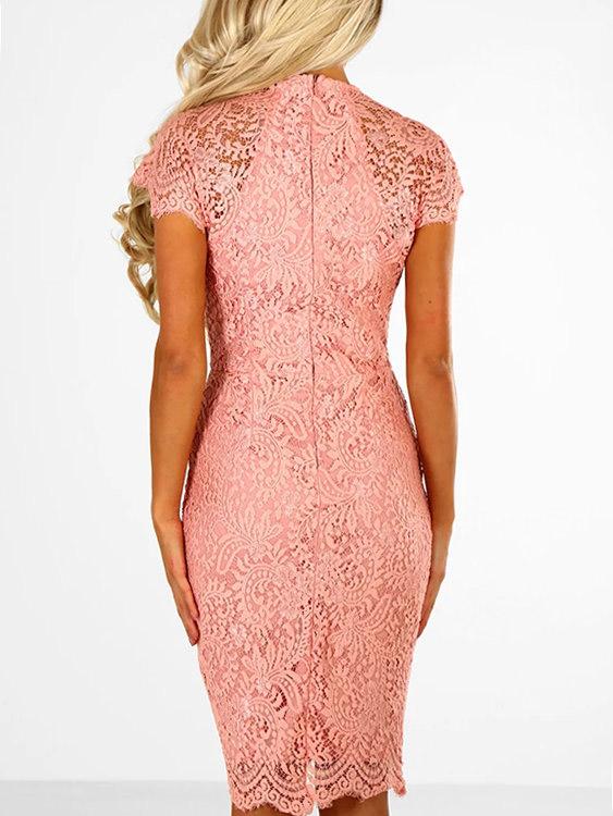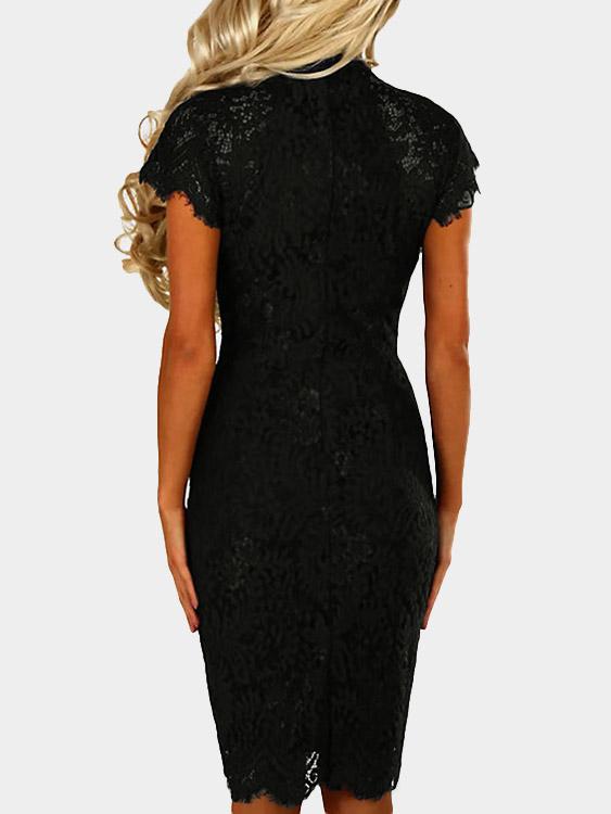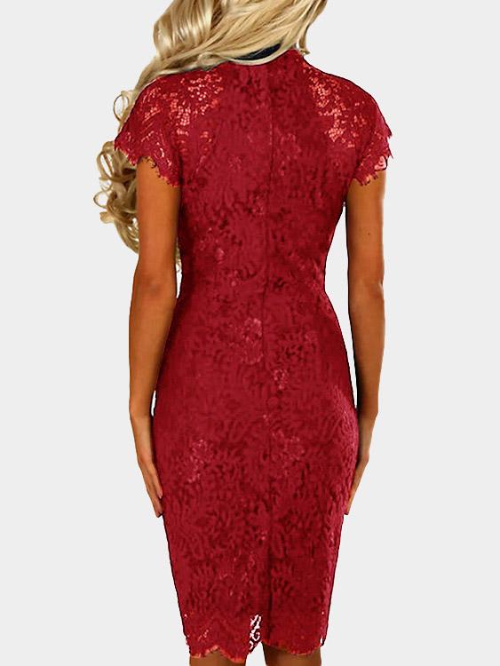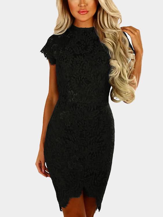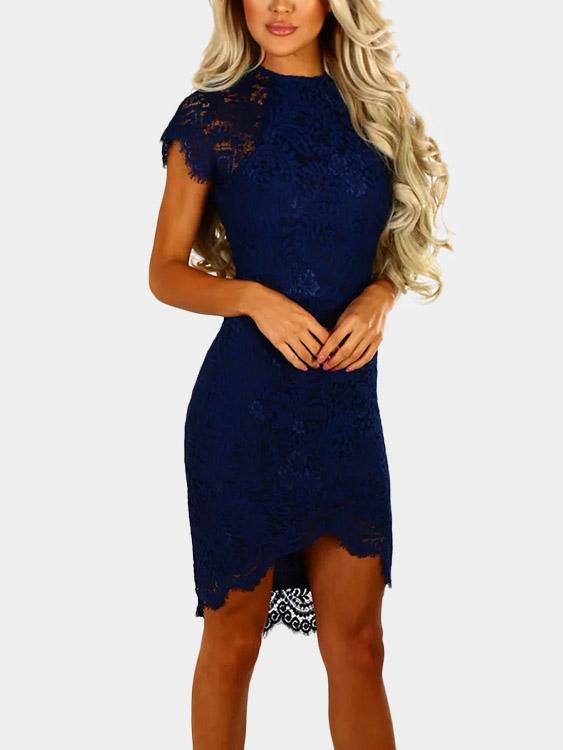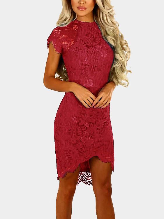 Round Neck Short Sleeve Lace Zip Back Irregular Hem Dresses