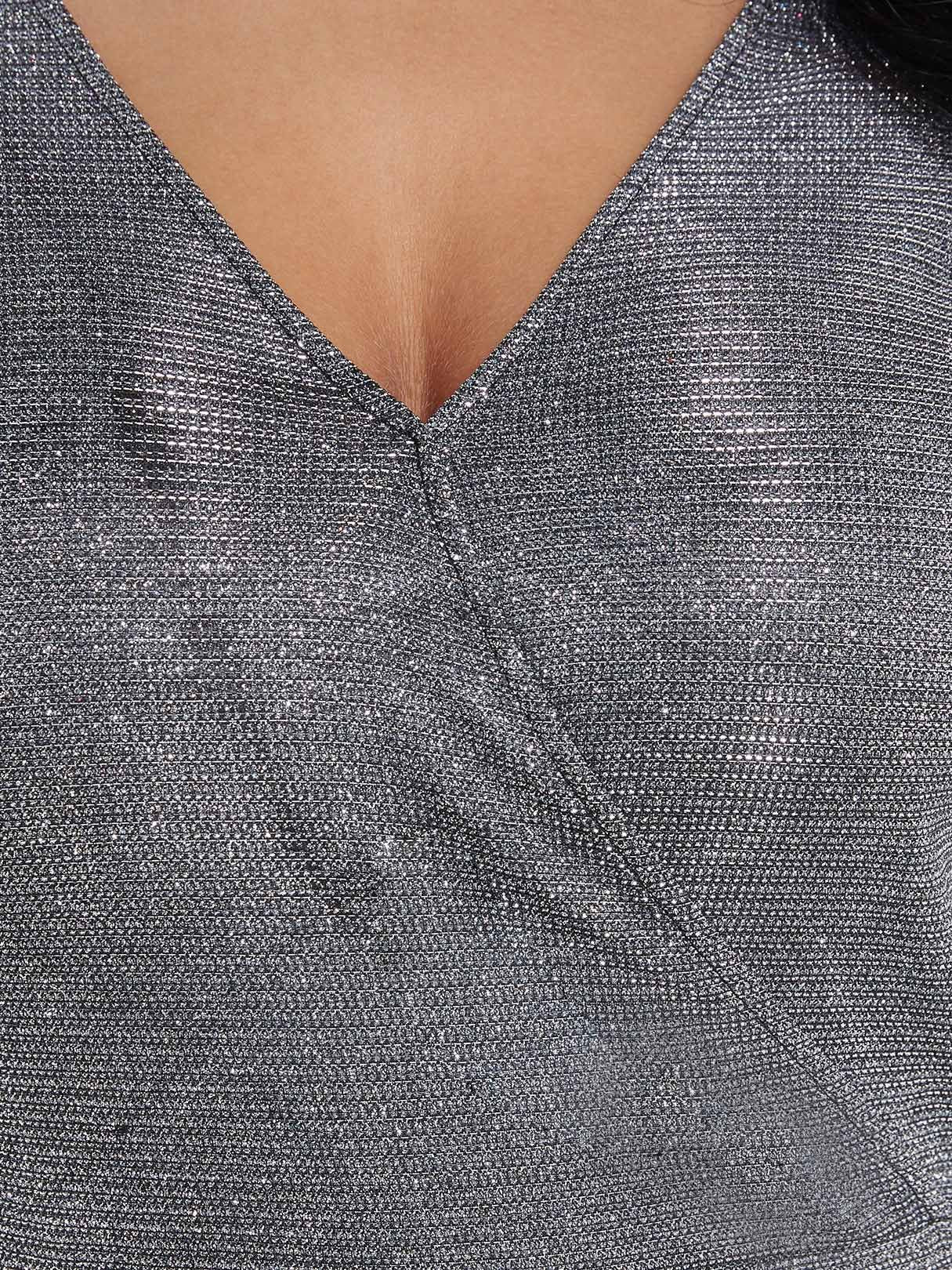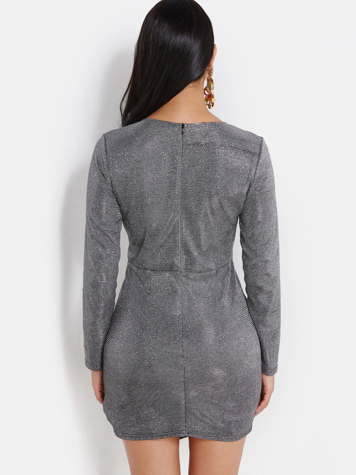 Silver V-Neck Long Sleeve Crossed Front Irregular Hem Dresses - Silver / S is backordered and will ship as soon as it is back in stock.