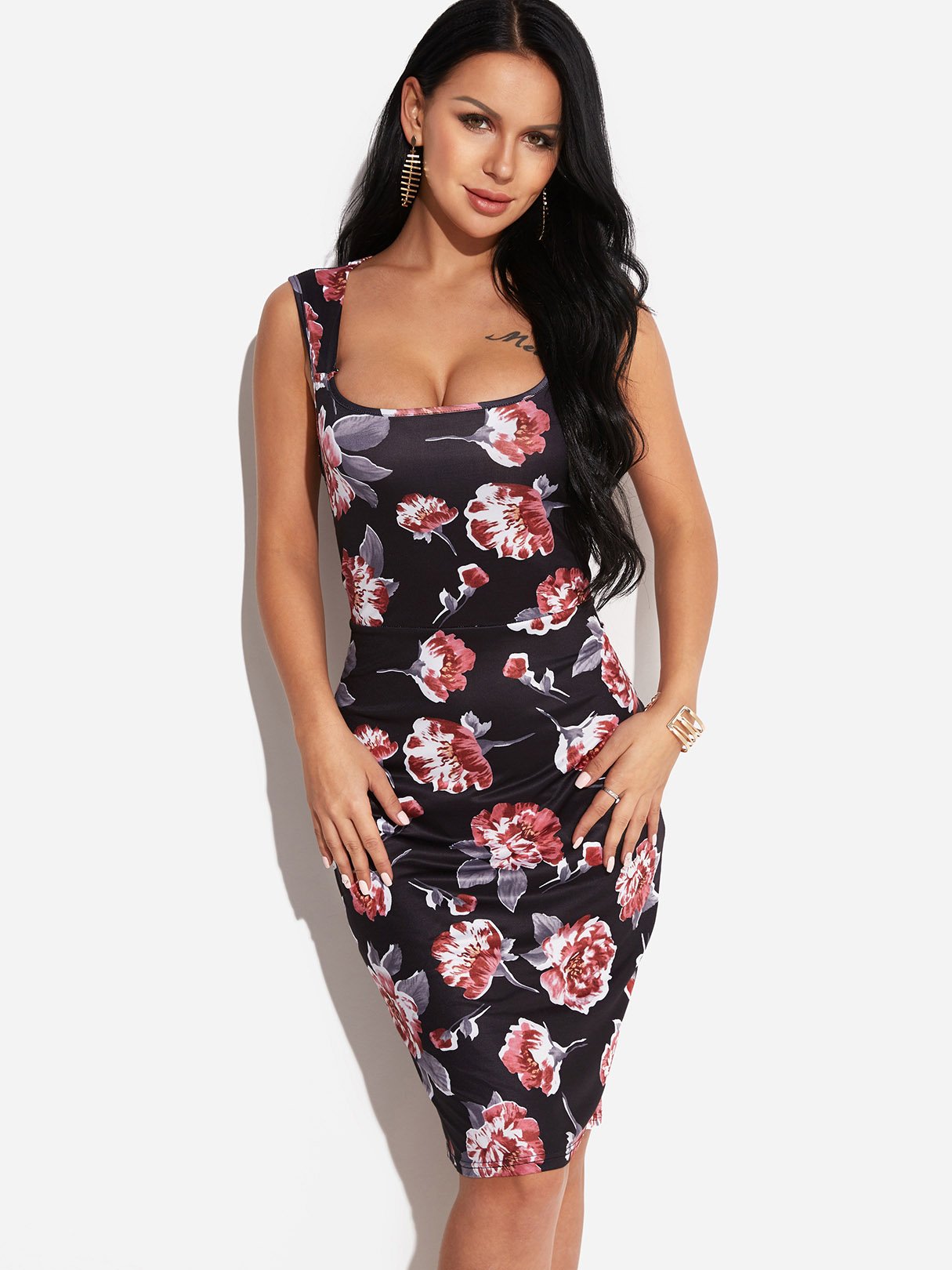 Material:Cotton,PolyesterNeckline:Square NeckSeason:Spring,SummerSleeves:SleevelessPattern:Floral PrintStyle:Casual StyleDetail:Backless DesignWaist Design:High-WaistedLength:MidiFit:Bodycon Fit