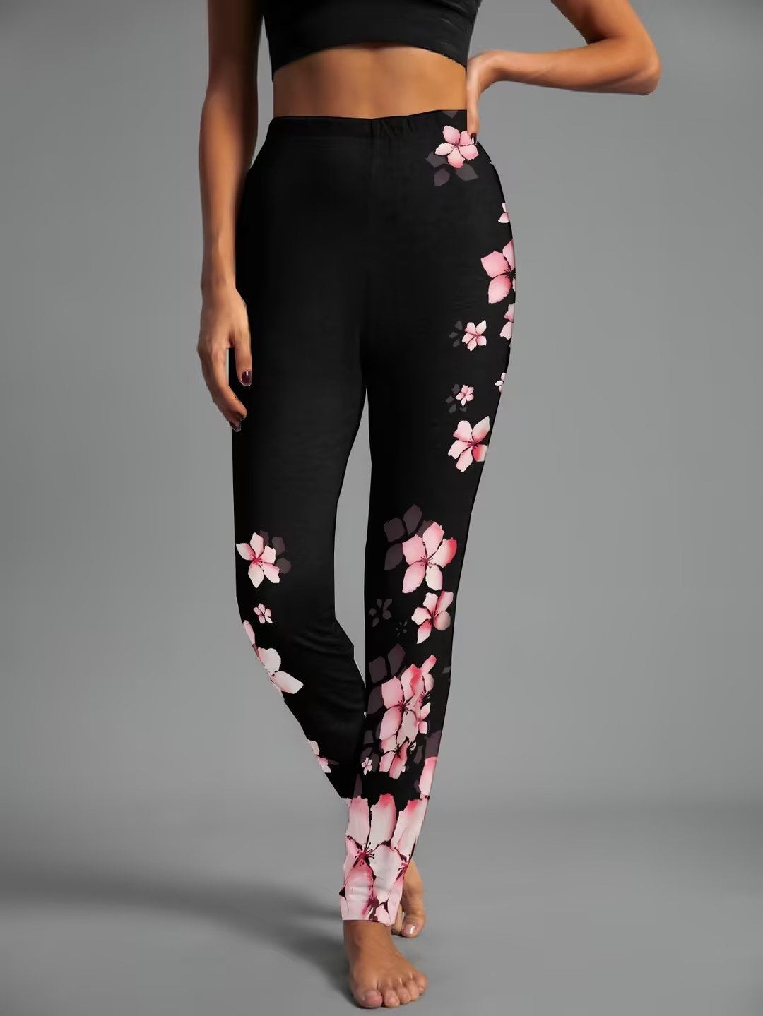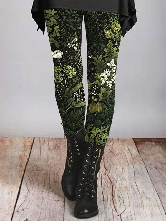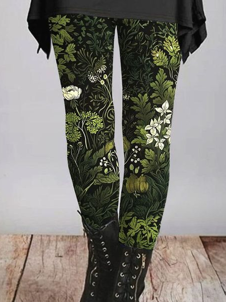 Casual Floral Tight Long Leggings - Green / S is backordered and will ship as soon as it is back in stock.