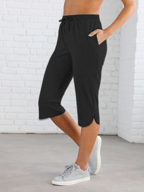 Fashion Plain Drawstring Loose Capris Pants - Gray / S is backordered and will ship as soon as it is back in stock.
