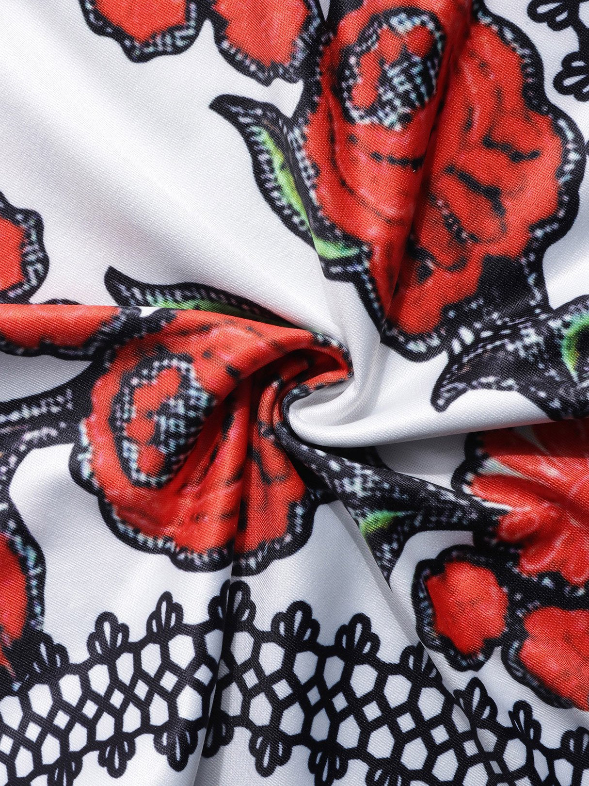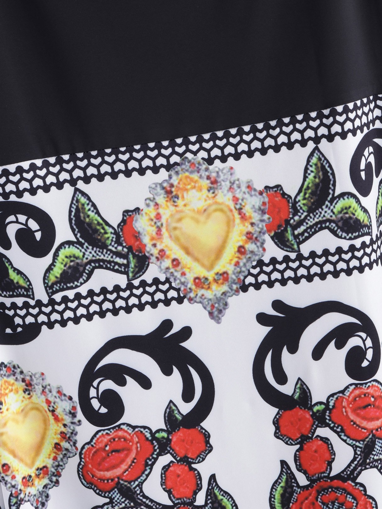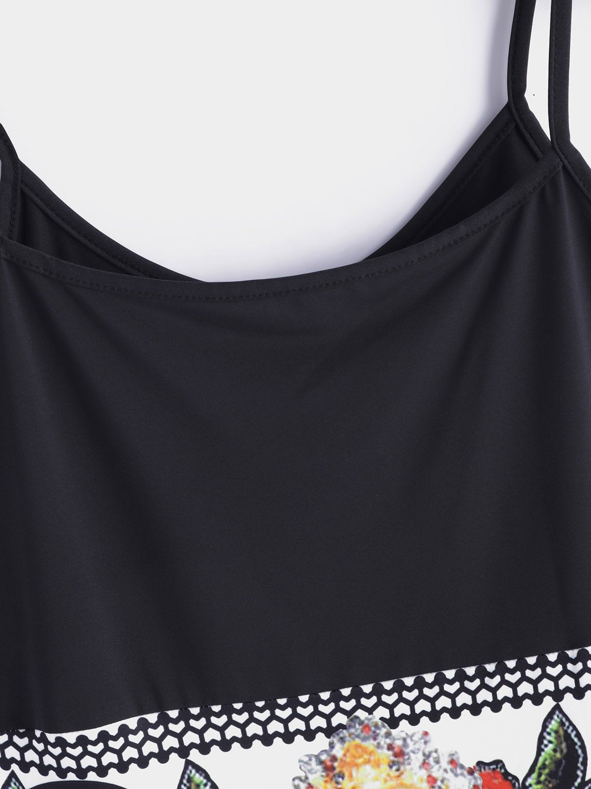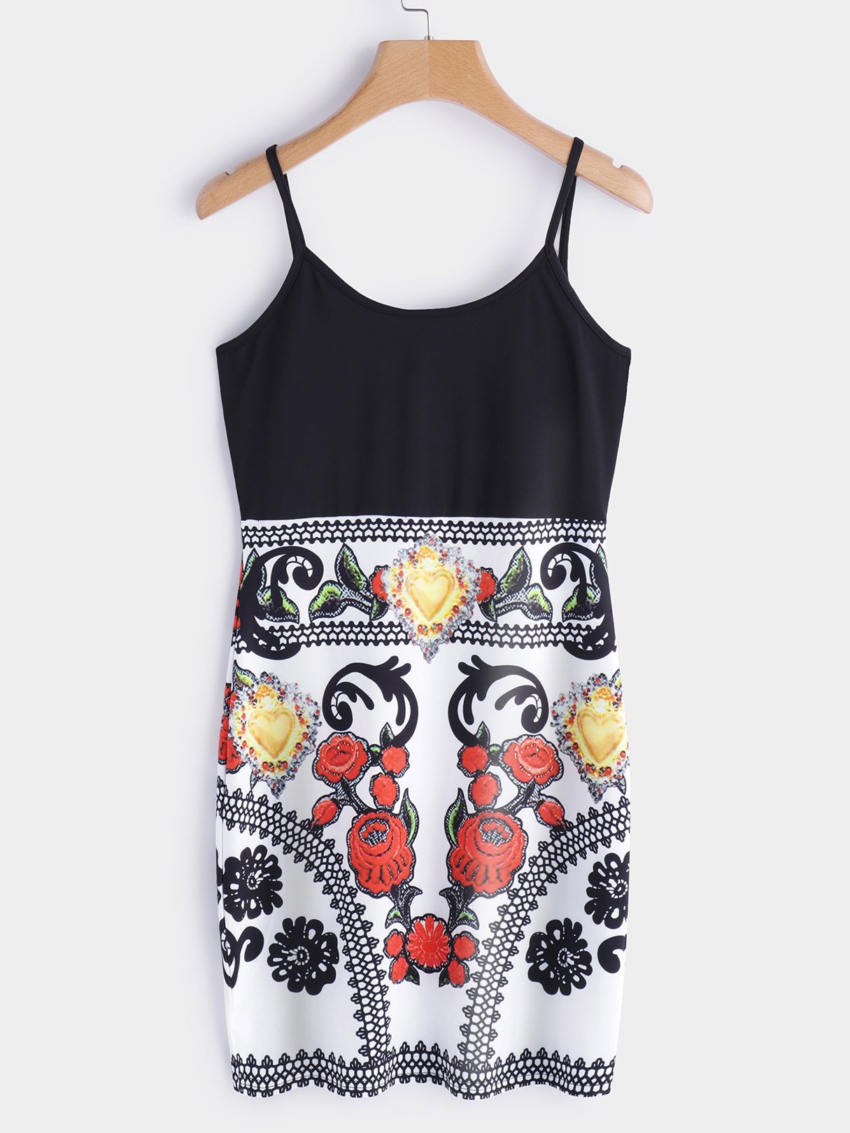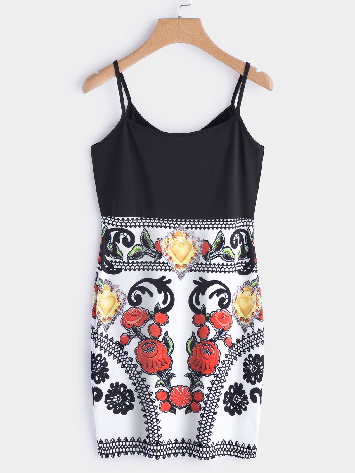 Black Scoop Neck Sleeveless Floral Print Backless Spaghetti Strap Dresses
