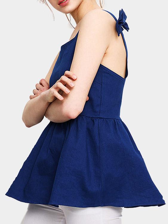 Blue Bateau Sleeveless Plain Backless Sexy Dresses