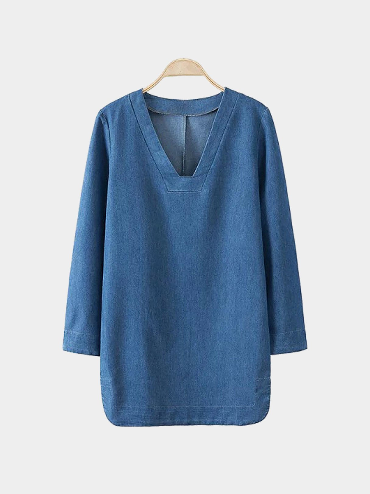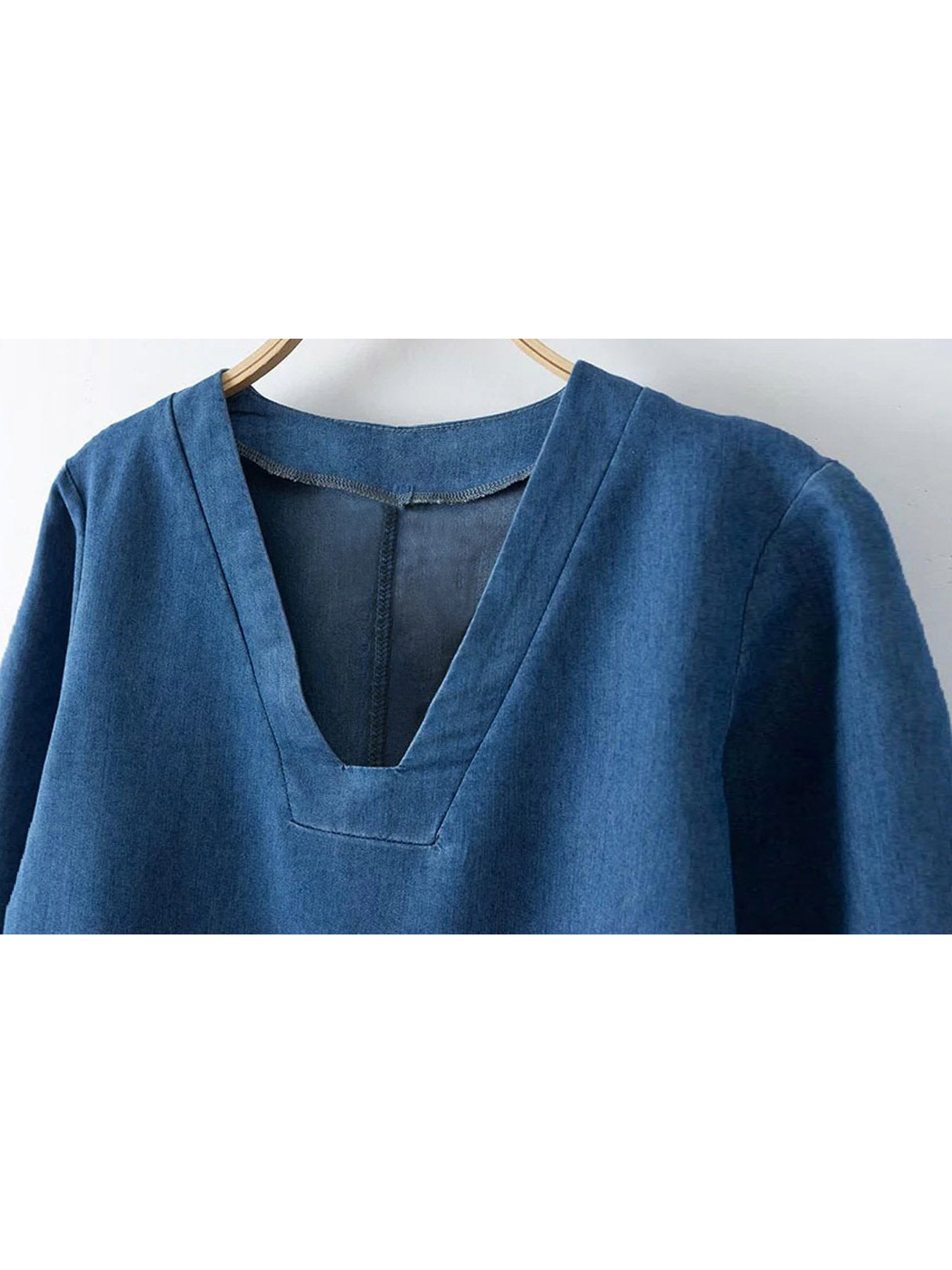 Blue V-Neck Bell Sleeve Dresses