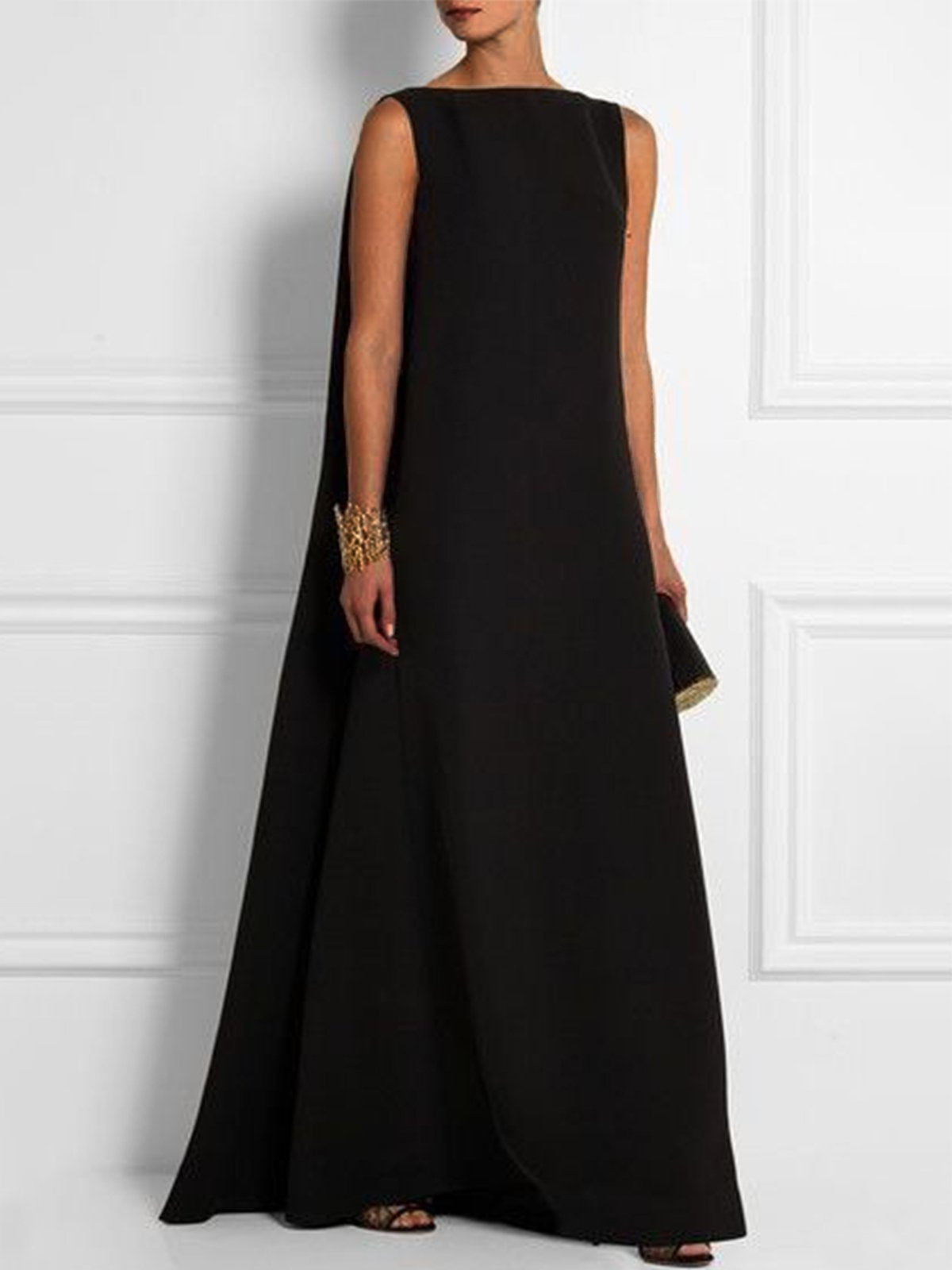 Elegant Sleeveless Crew Neck Plain Maxi Dress