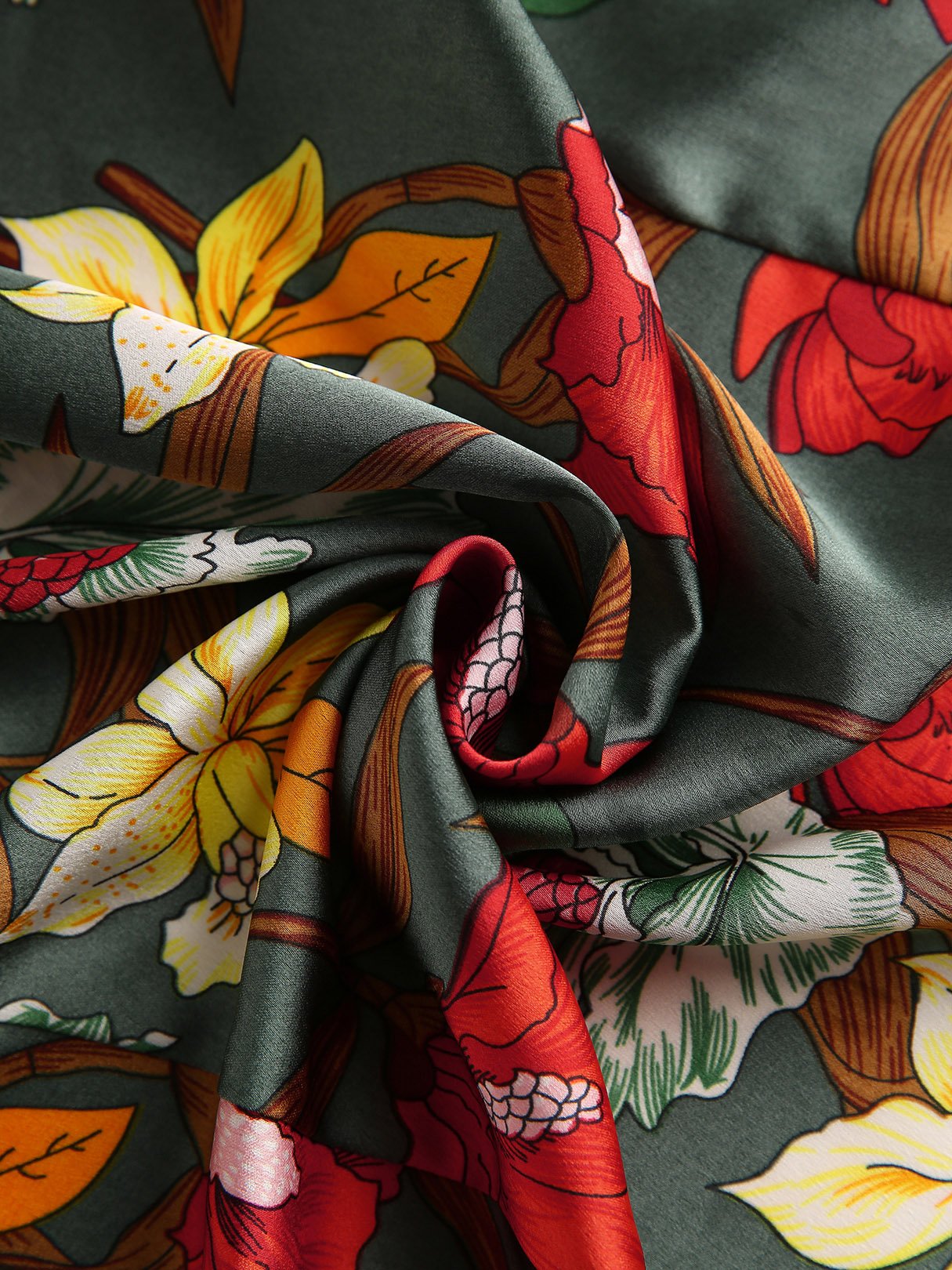 Green V-Neck Cold Shoulder Floral Print Spaghetti Strap Self-Tie Dresses