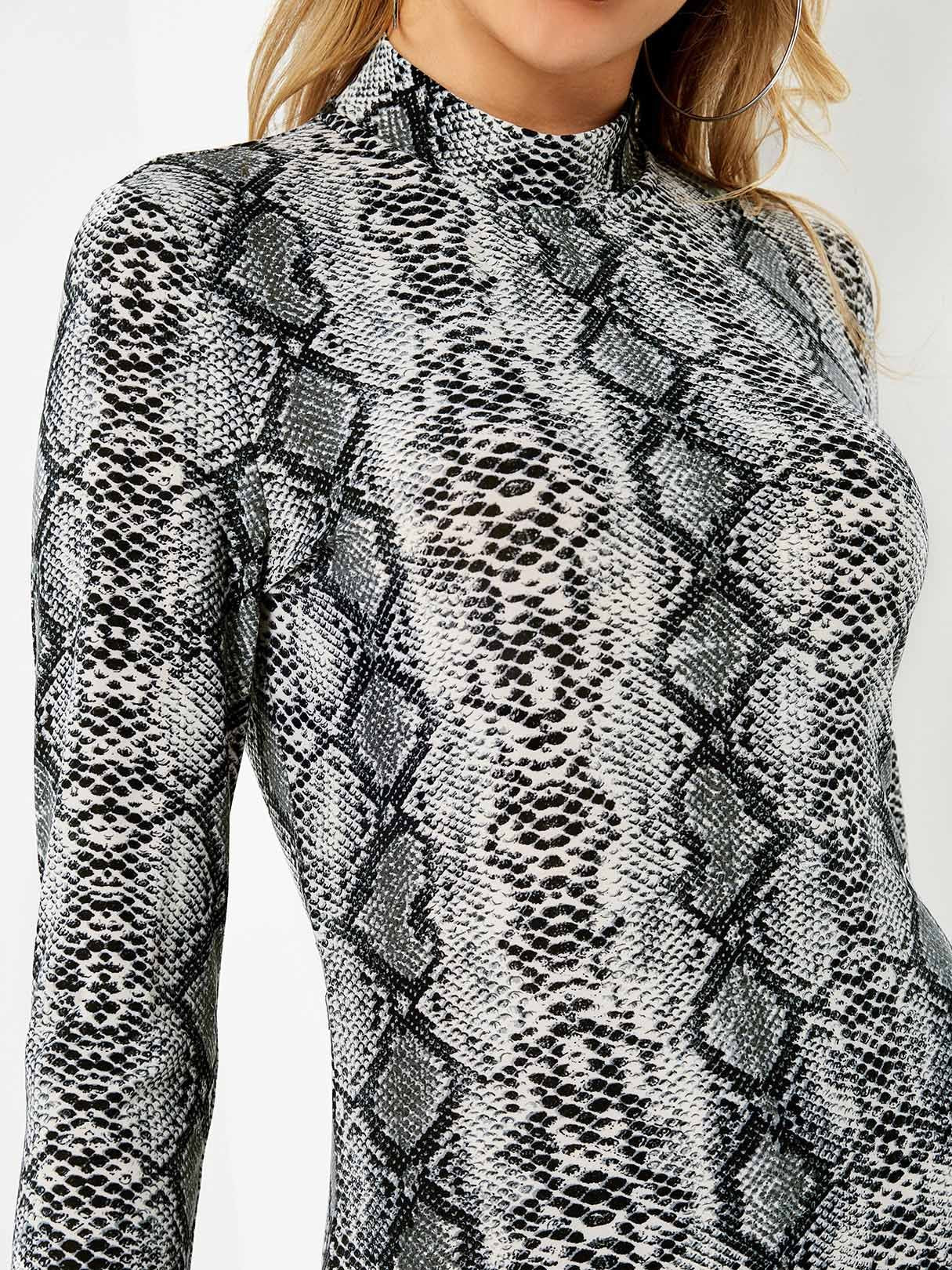 Grey Long Sleeve Snake Backless Cut Out Sexy Dresses