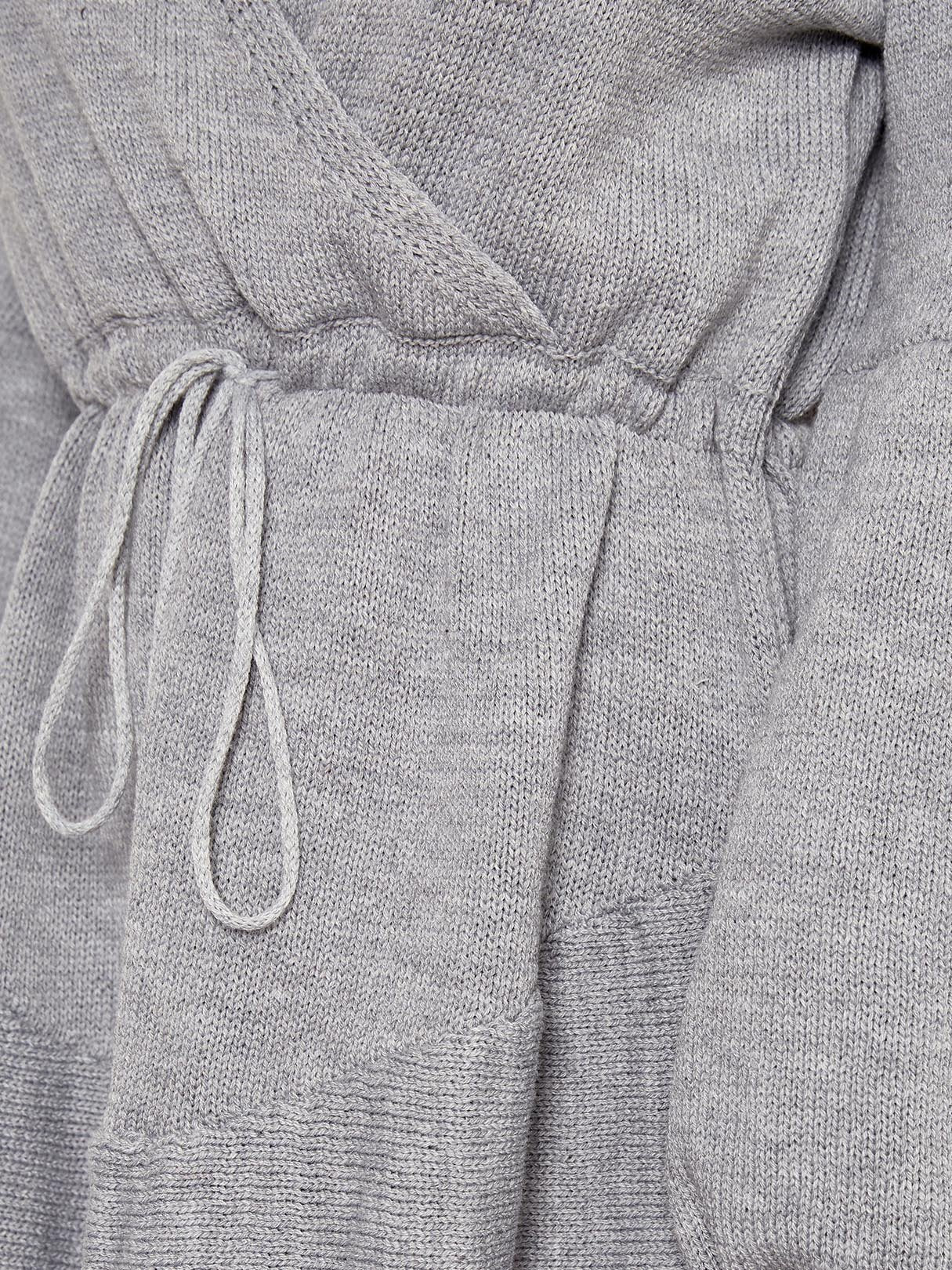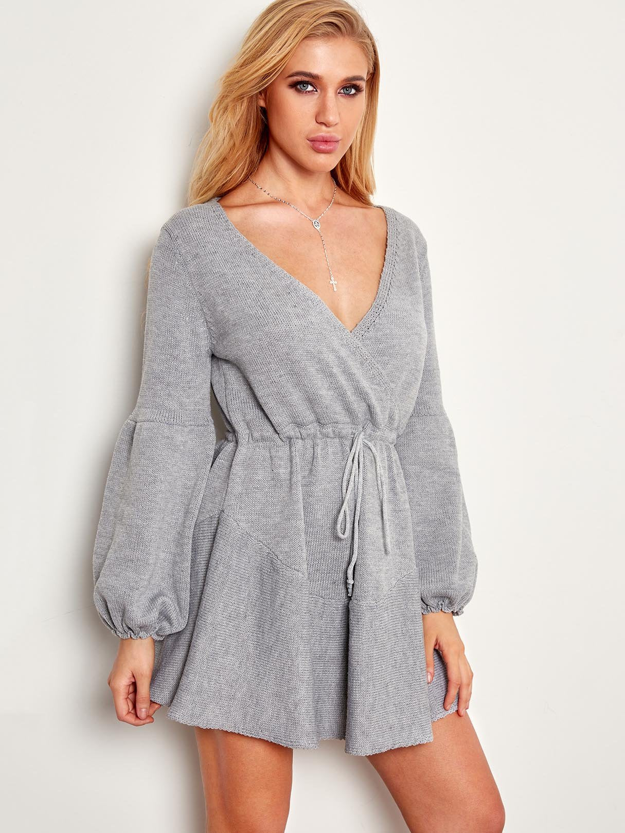 Grey V-Neck Long Sleeve Lace-Up Wrap Dresses