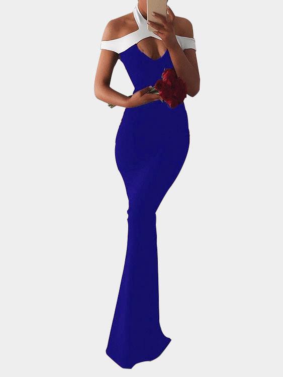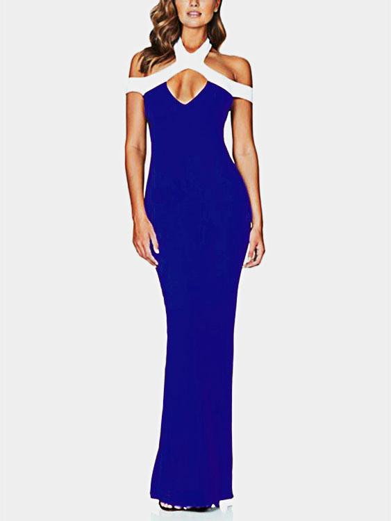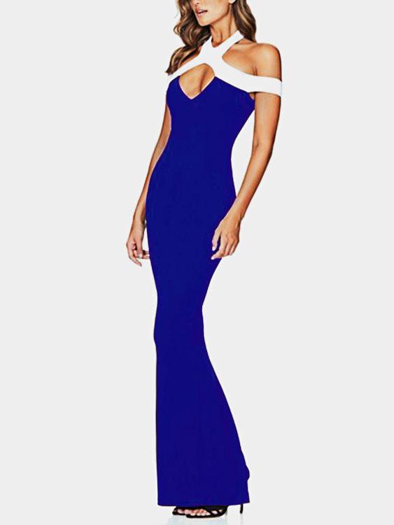 Halter Cold Shoulder Cut Out Sleeveless Navy Sexy Dresses