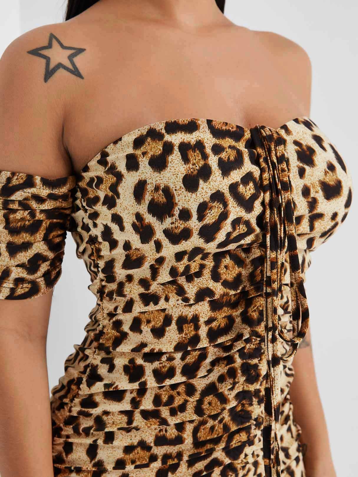Halter Half Sleeve Leopard Backless Lace-Up Pleated Sexy Dresses