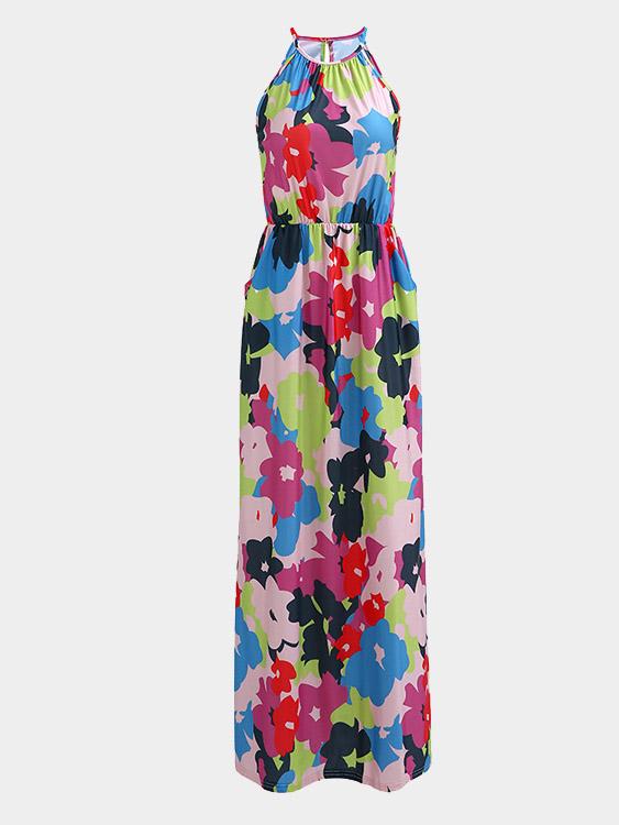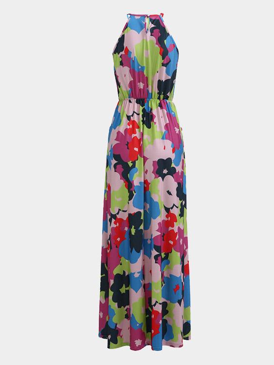 Material:PolyesterNeckline:HalterSeason:SummerSleeves:SleevelessPattern:Floral PrintLength:Maxi