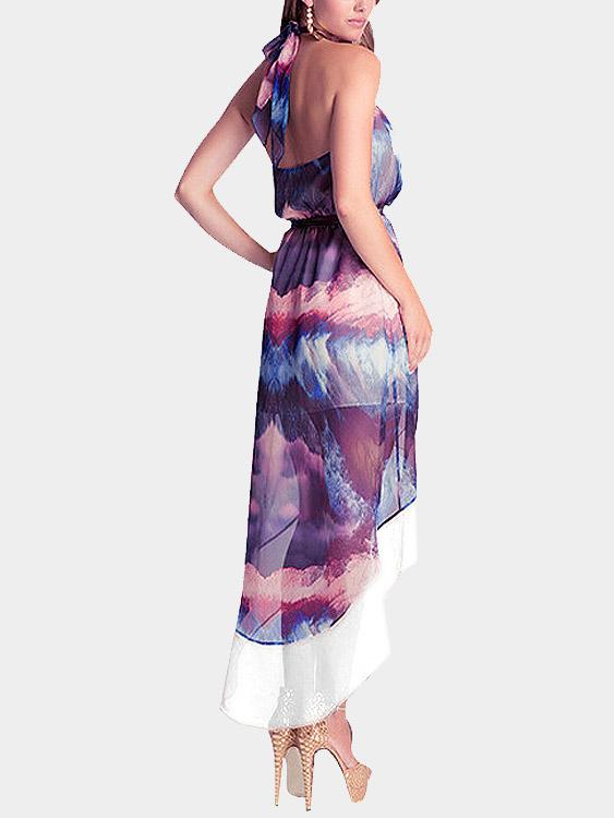 Halter Sleeveless Printed Backless Slit Hem Sexy Dresses