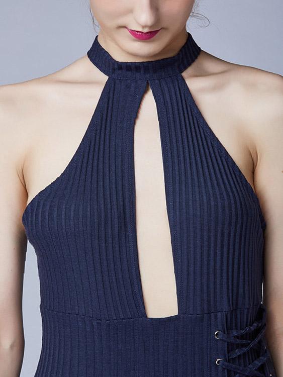 Navy Halter Sleeveless Irregular Hem Sexy Dresses