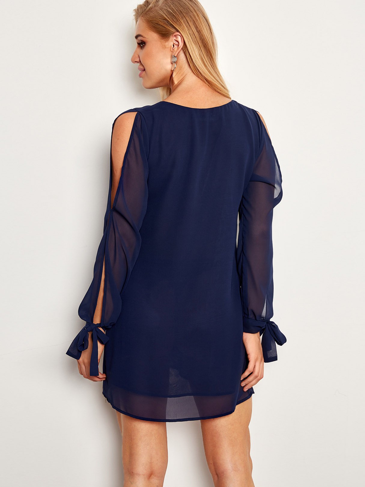Navy Long Sleeve Cut Out Dresses