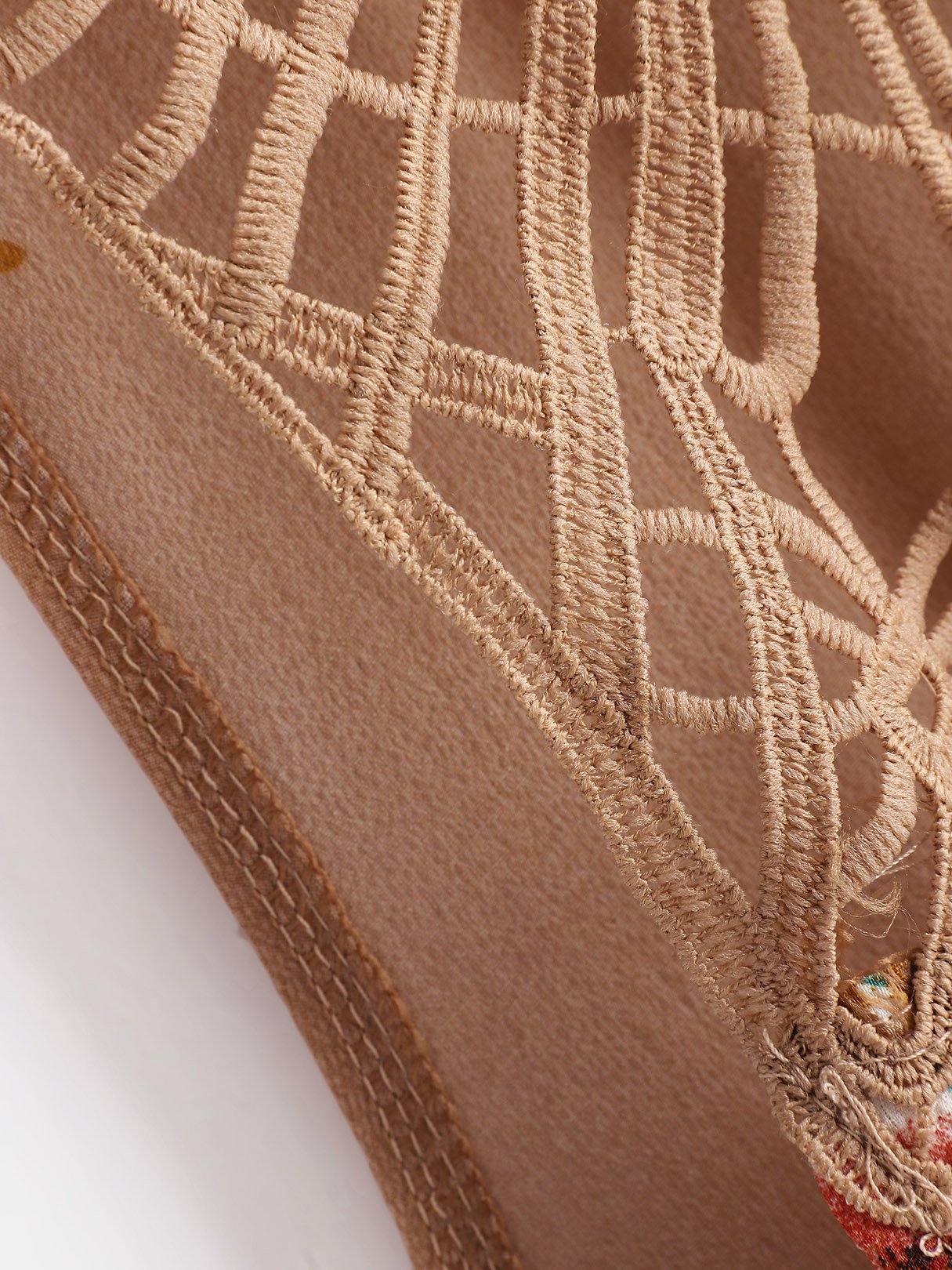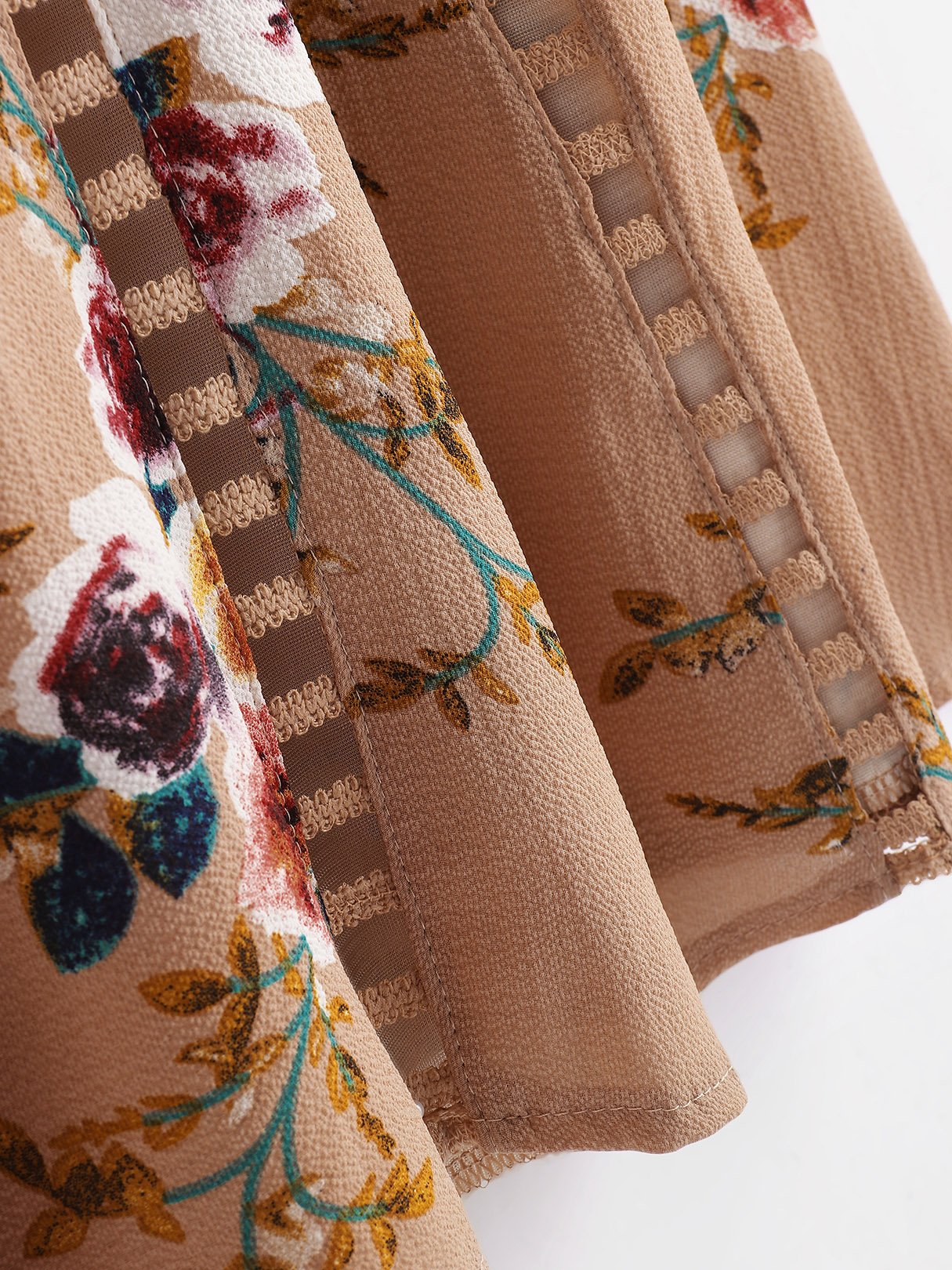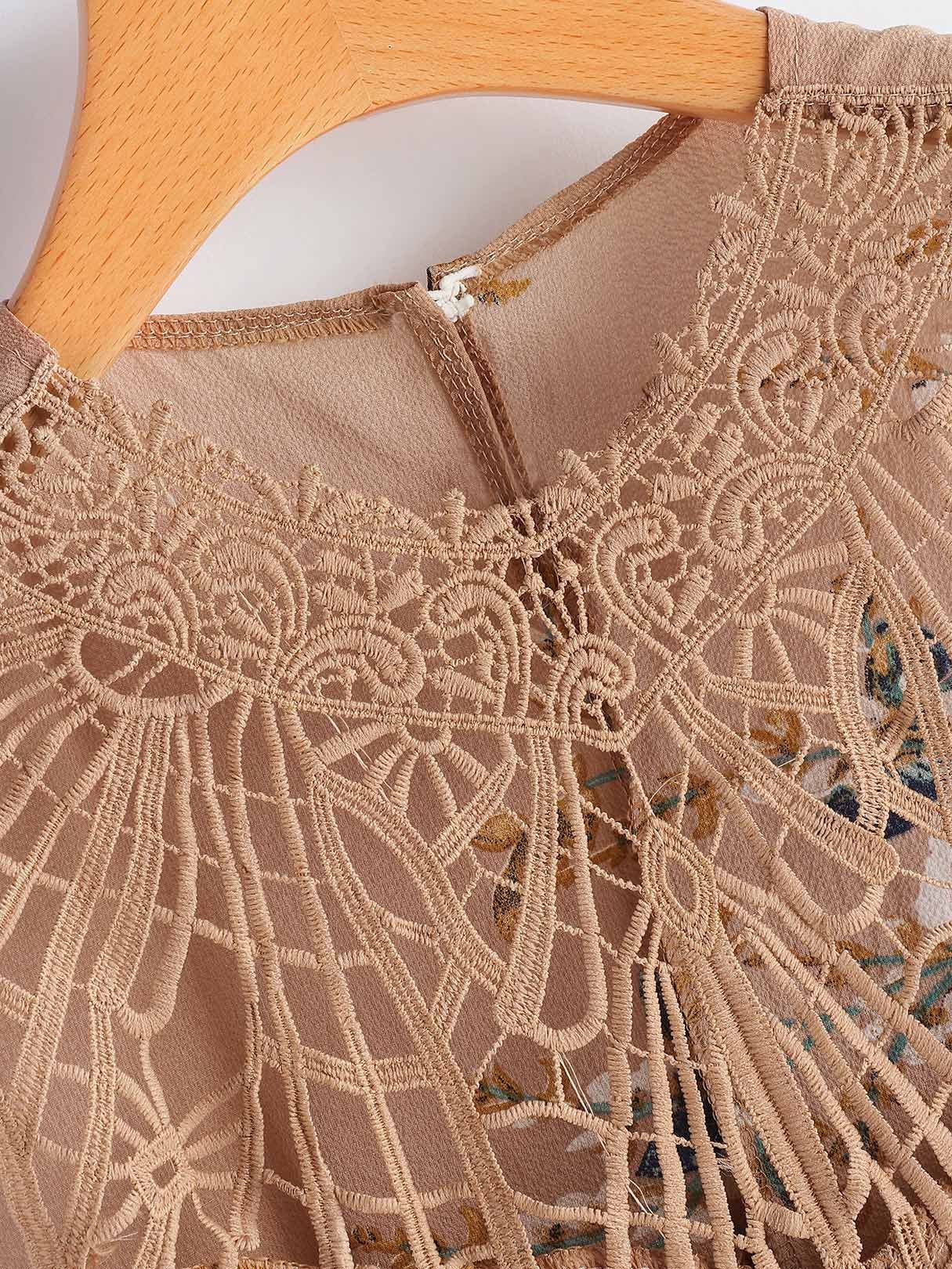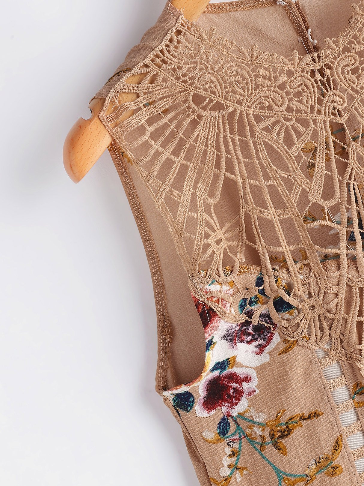 Perkins Collar Floral Print Lace Zip Back See Through Sleeveless Dresses