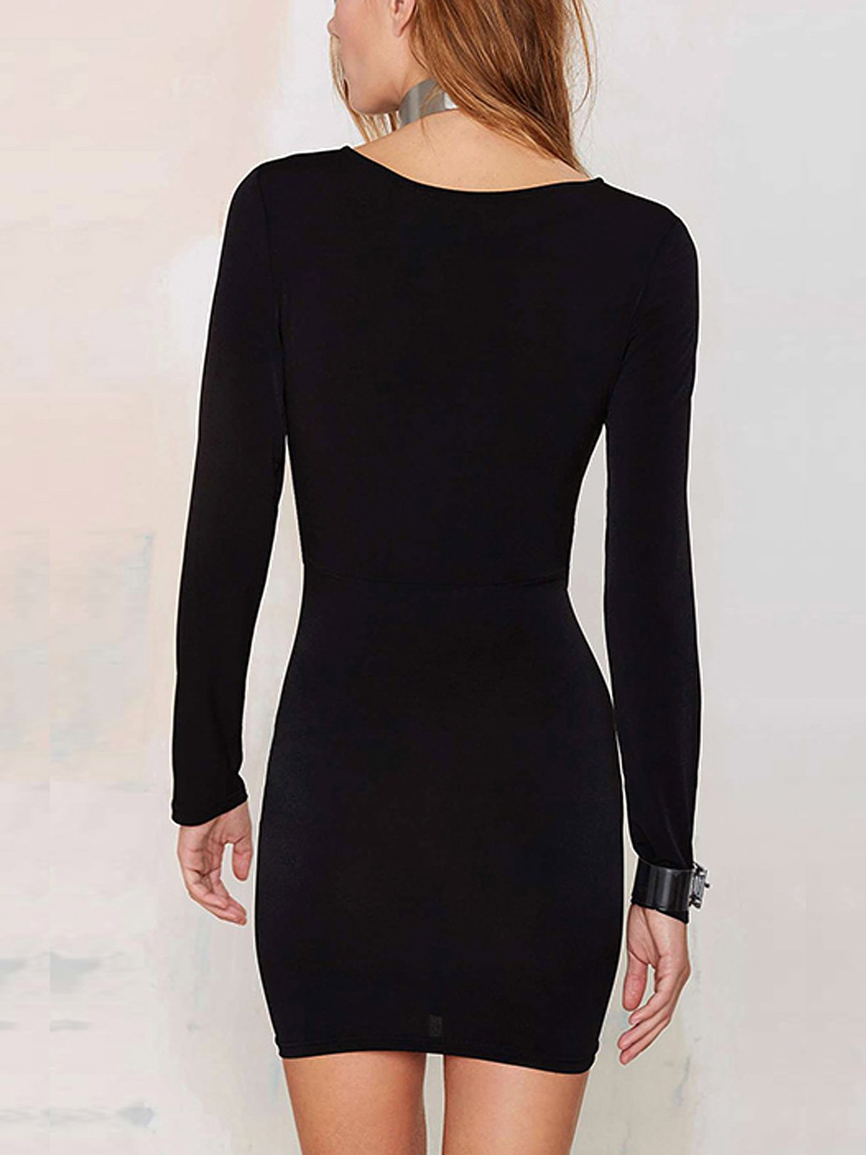 Round Neck Long Sleeve Cut Out Sexy Dress