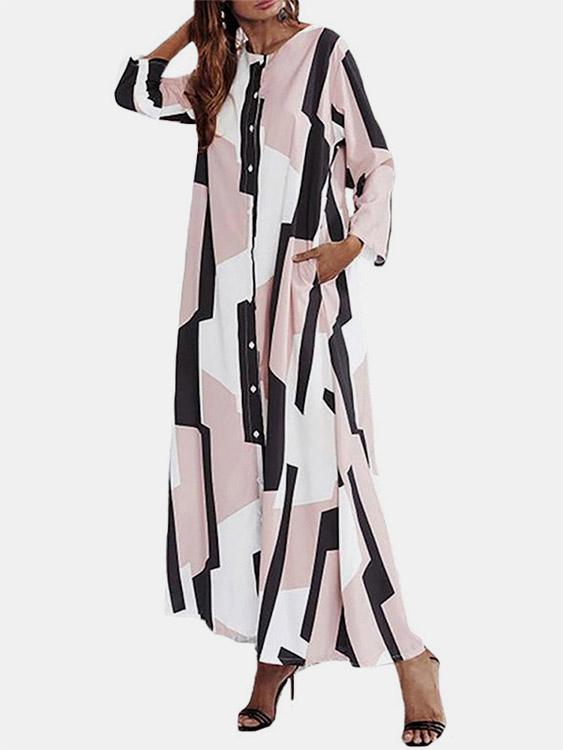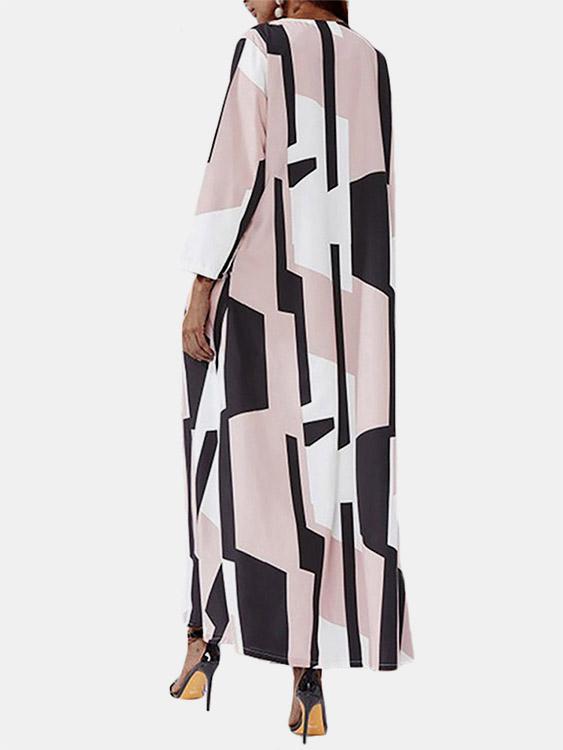 Round Neck Long Sleeve Geometrical Maxi Dress