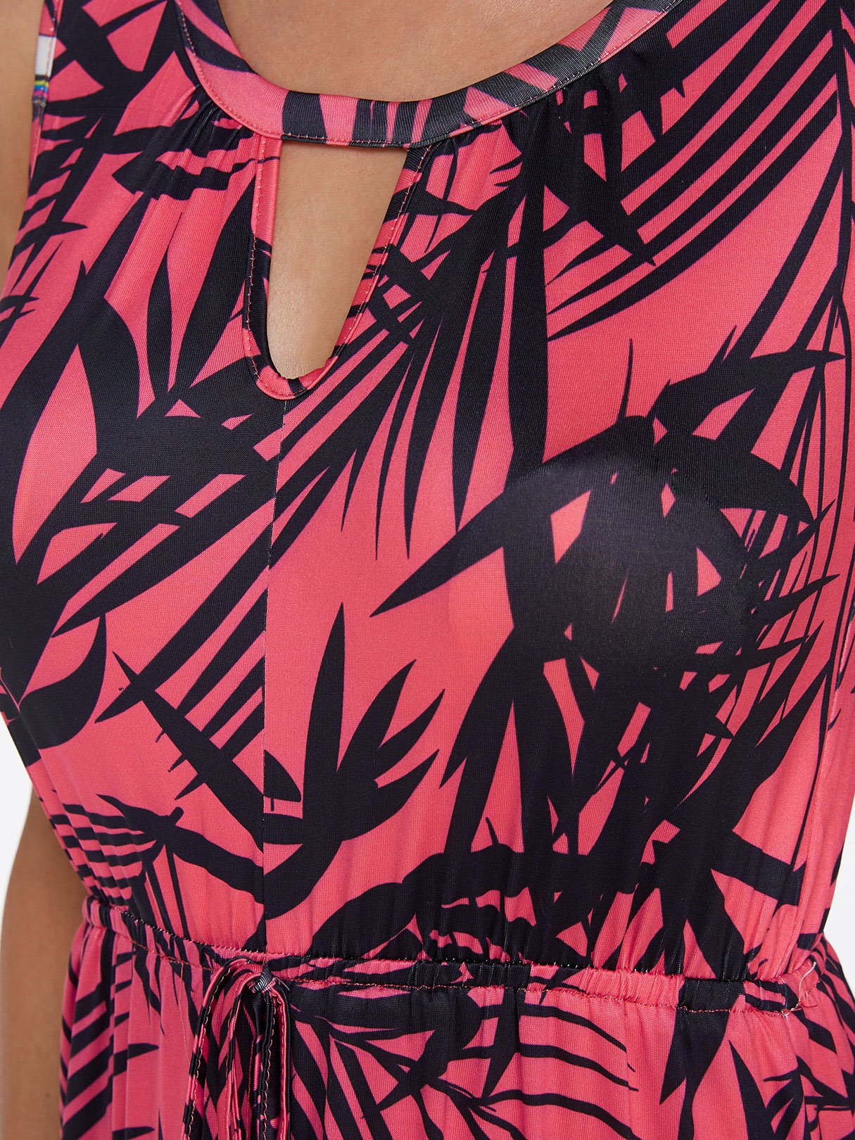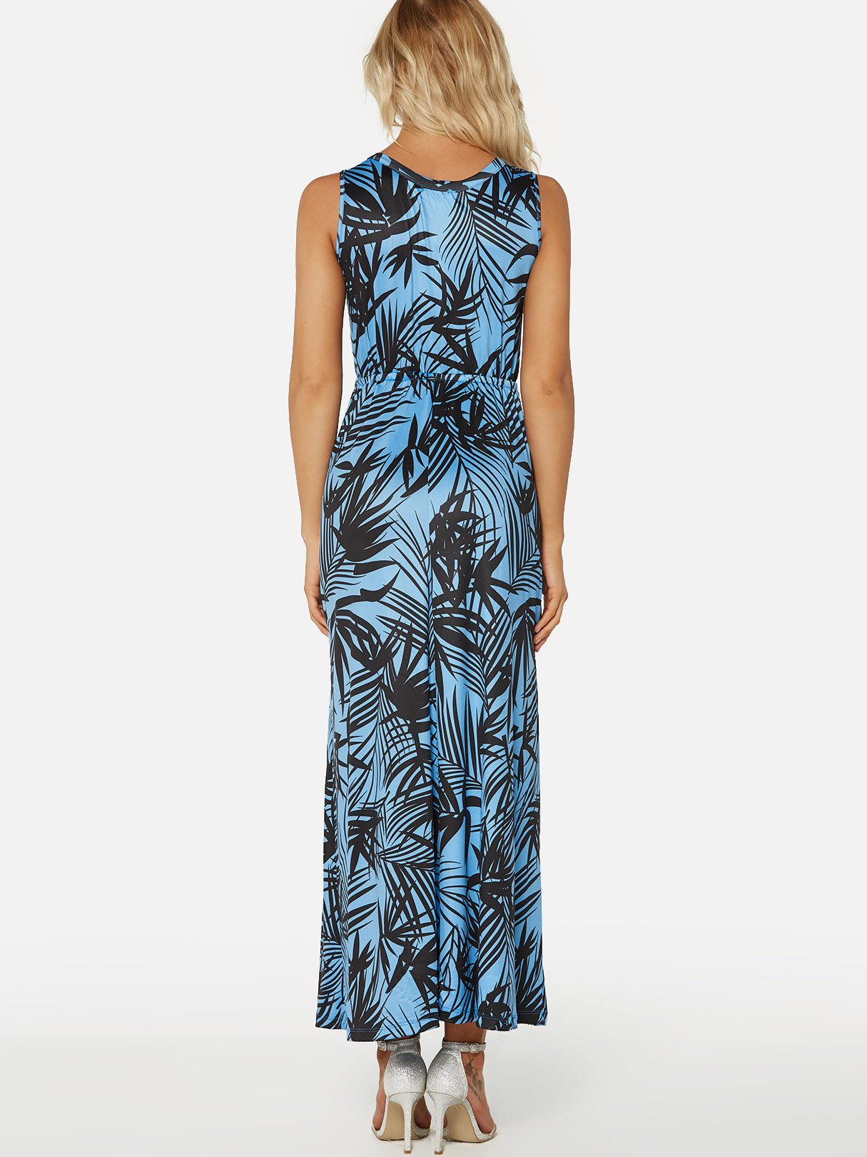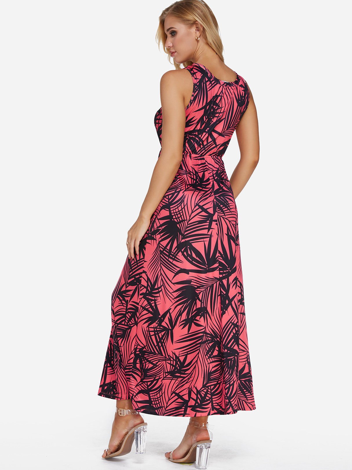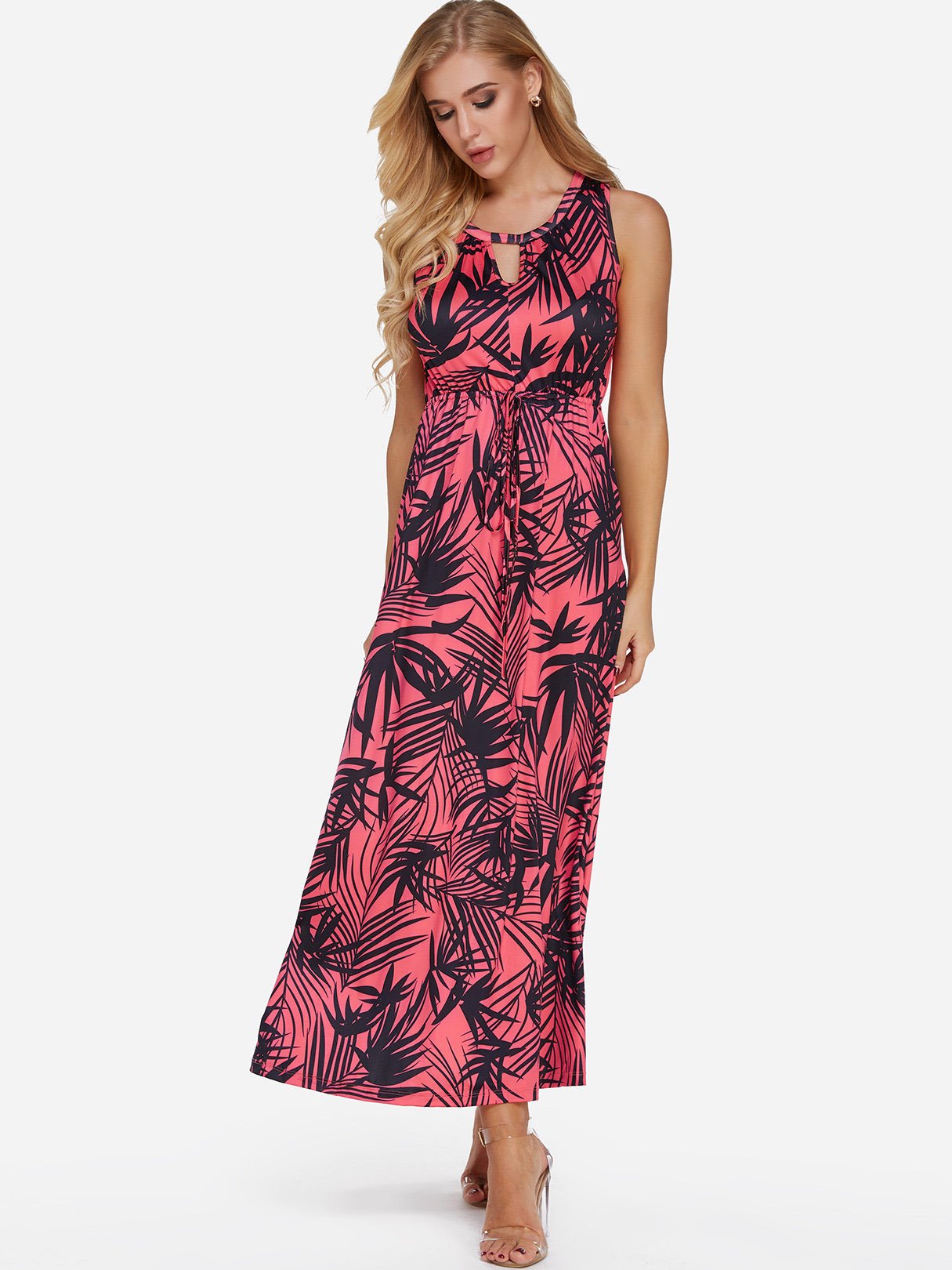 Round Neck Sleeveless Floral Print Lace-Up Cut Out Maxi Dress