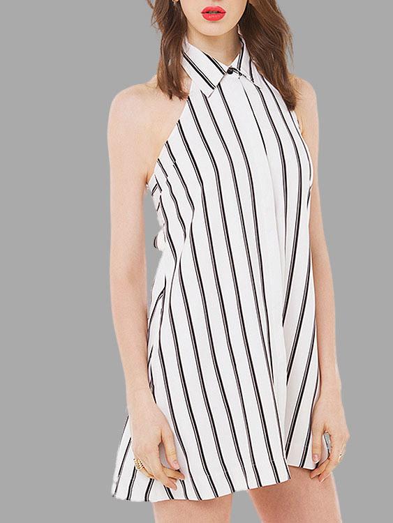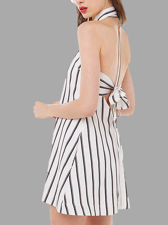 Stripe Patter Halter Neck Backless Lace-up Dresses