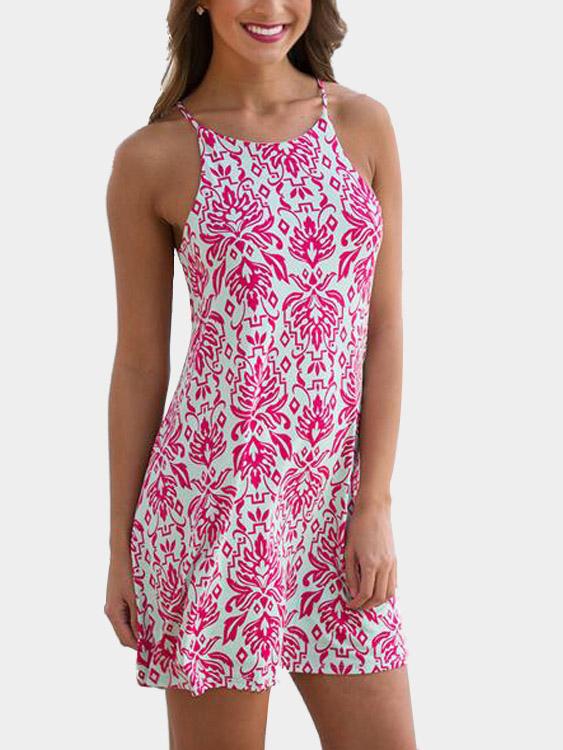 Thin Shoulder Strap Random Floral Pattern Sleeveless Dresses