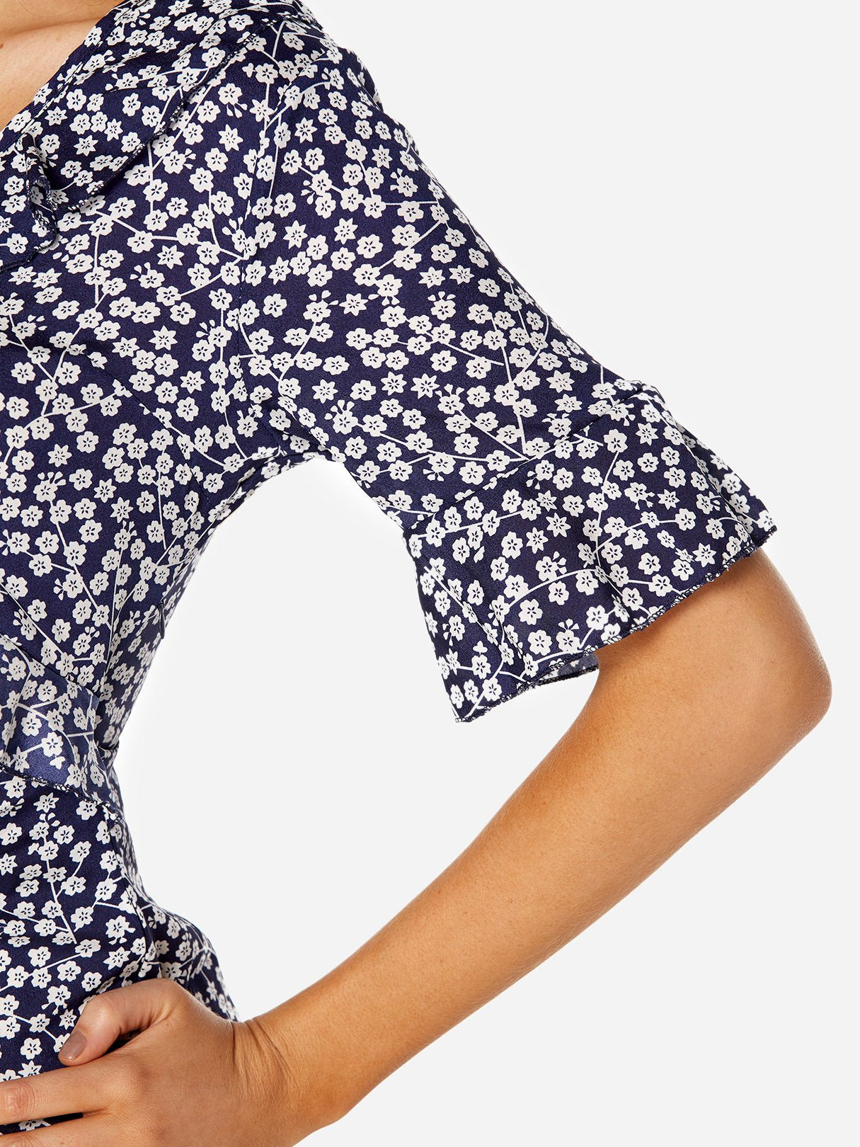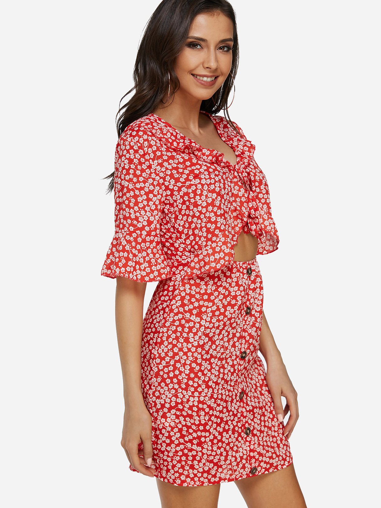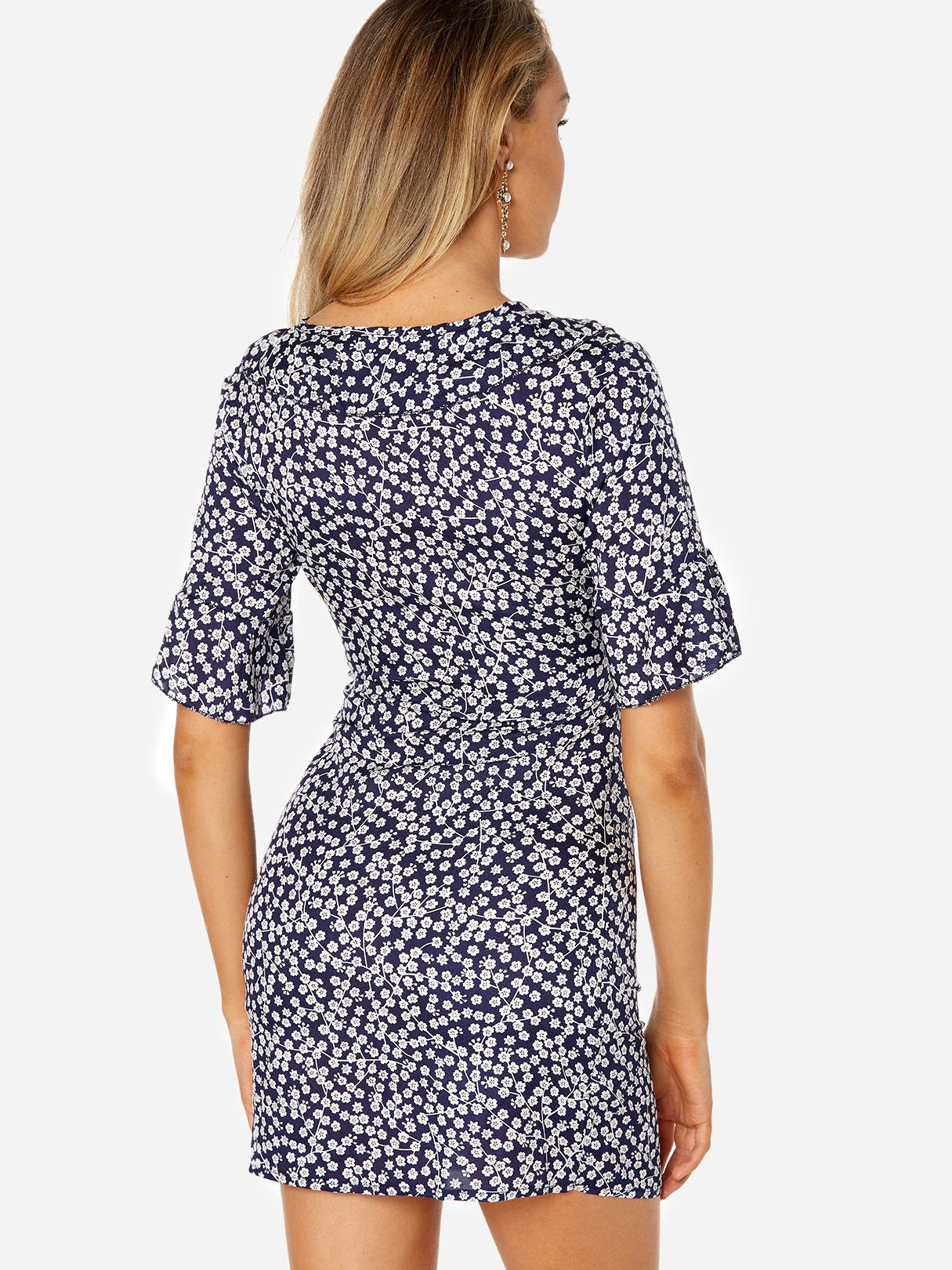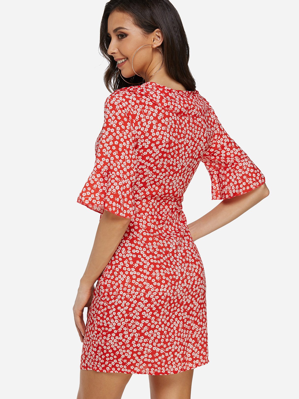 V-Neck Half Sleeve Floral Print Zip Back Dresses