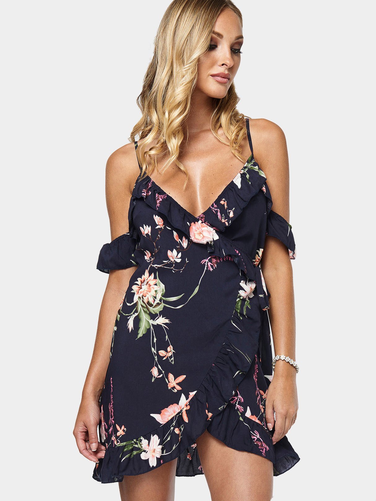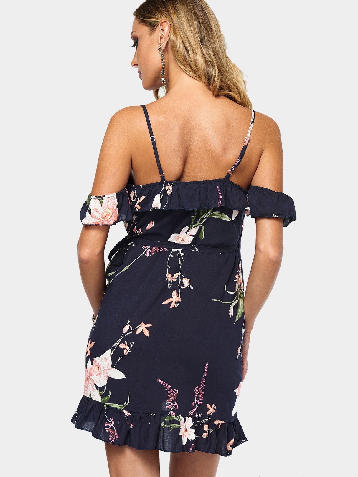 Material:PolyesterNeckline:V-NeckSeason:Spring,Summer,AutumnSleeves:Short SleevesPattern:Floral PrintStyle:Vacation StyleDetail:Adjustable Shoulder Straps,Backless Design,Wrap DesignType:A-LineLength:MiniFit:Regular Fit