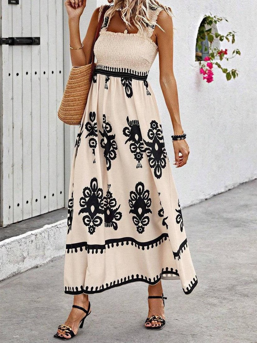 Vacation Sleeveless Spaghetti Nationality Loose Maxi Dress - Apricot / S is backordered and will ship as soon as it is back in stock.