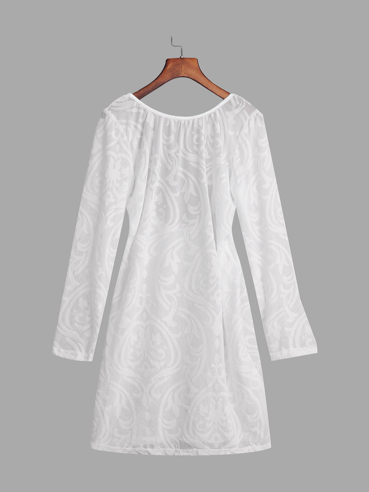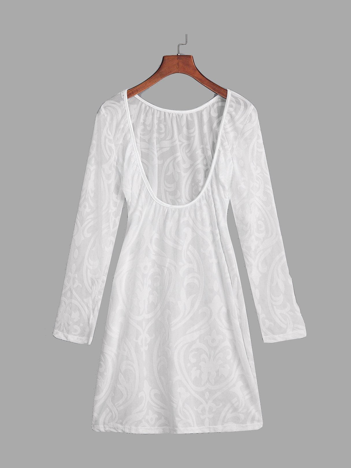 White Round Neck Long Sleeve Backless Sexy Dresses