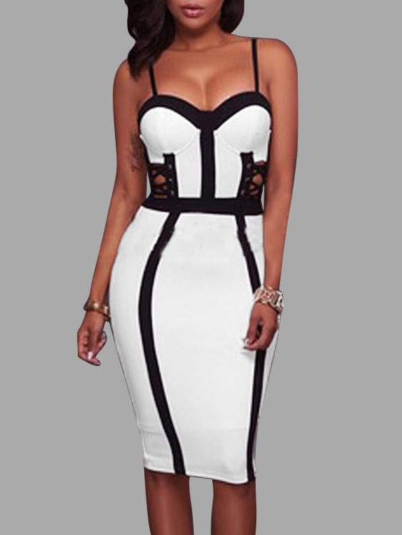 White Sleeveless Zip Back Cut Out Spaghetti Strap Bodycon Sexy Dress