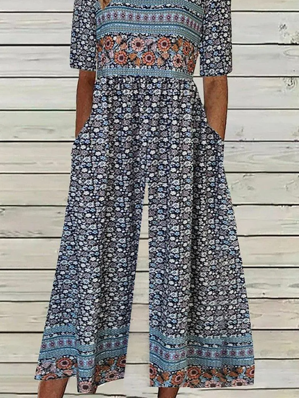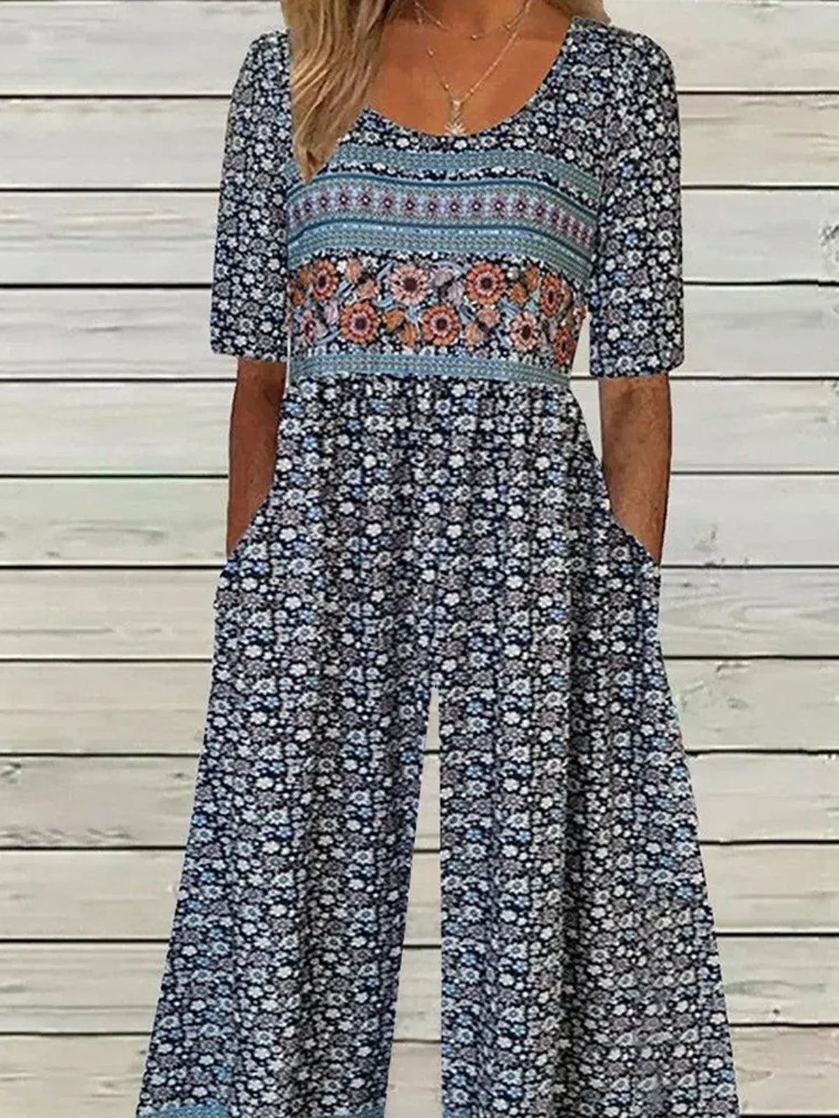 Loose Short Sleeve Asymmetrical Striped Vacation Ankle Jumpsuit - Blue / S is backordered and will ship as soon as it is back in stock.