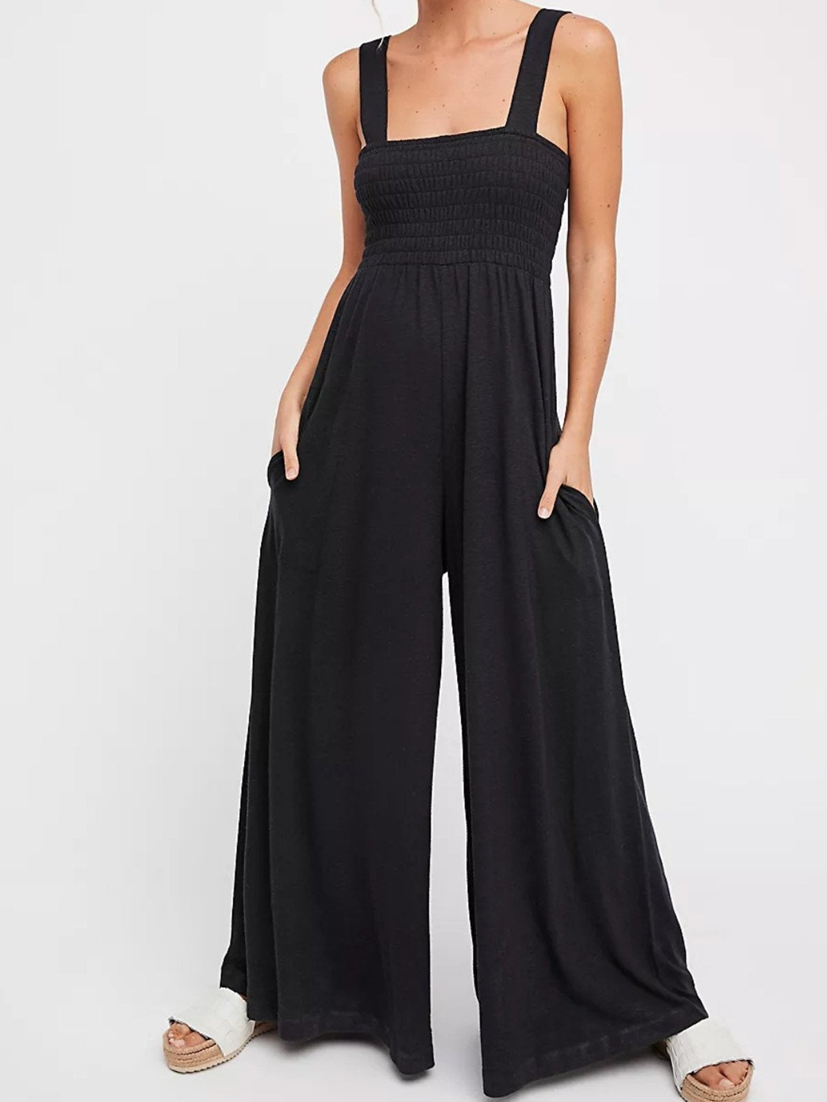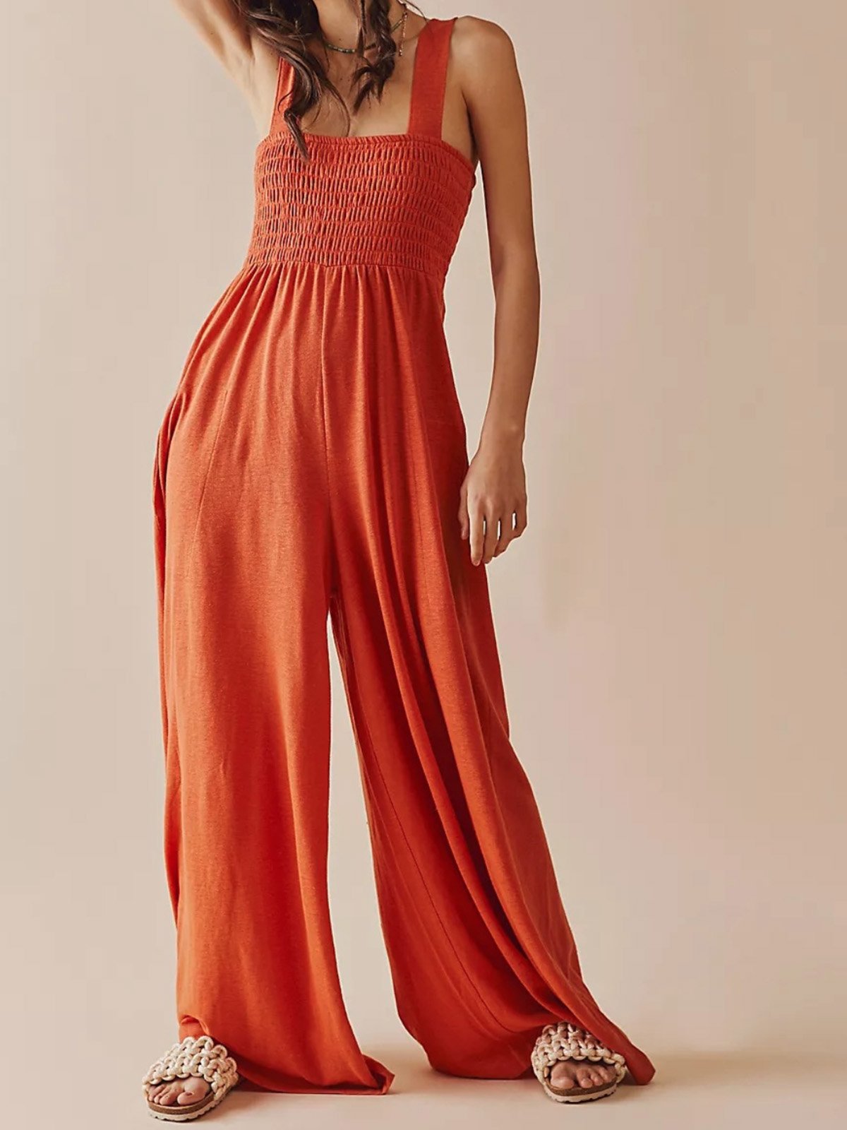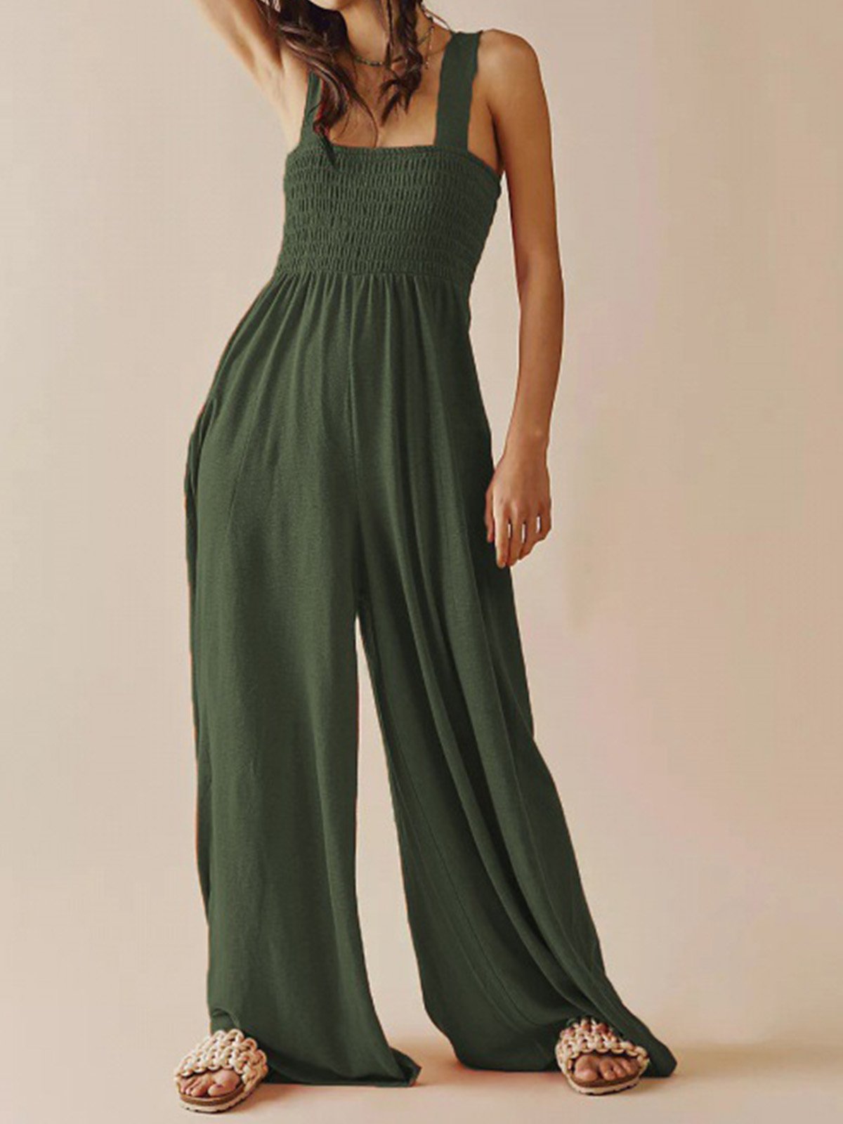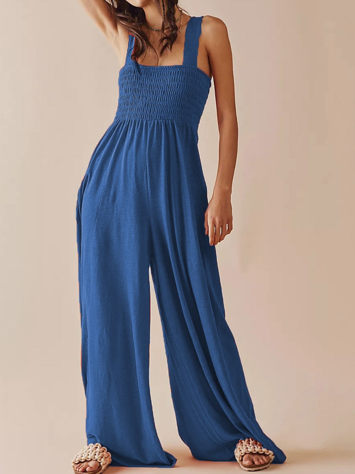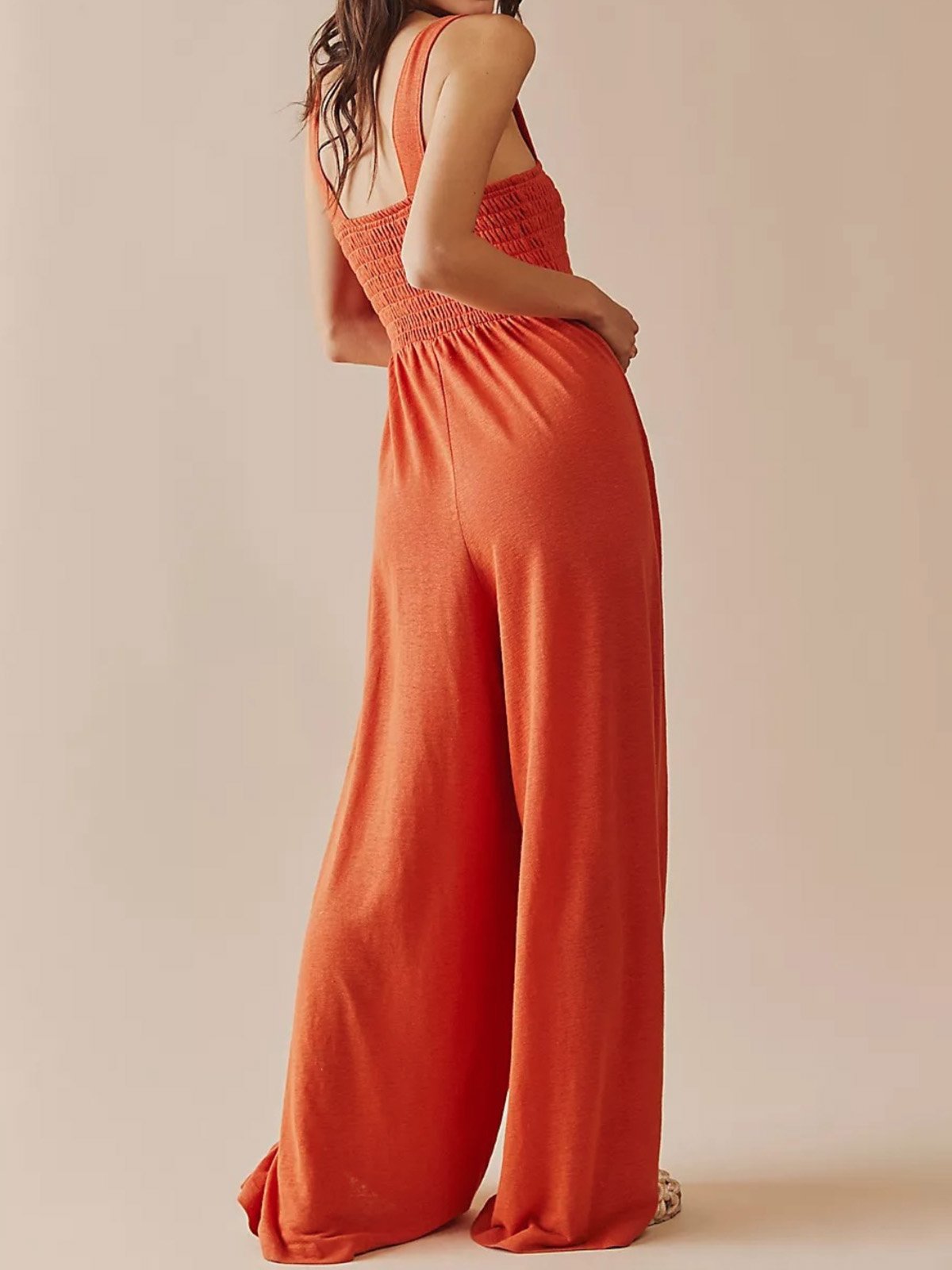 Sleeveless Spaghetti Plain Fashion Long Jumpsuit