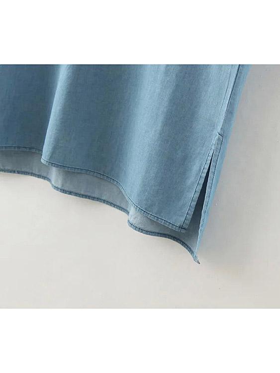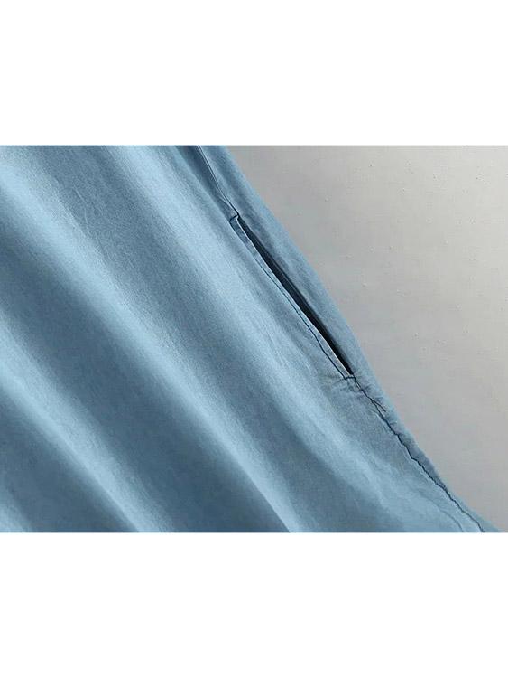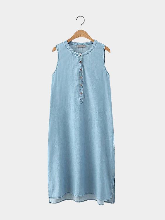Blue Crew Neck Sleeveless Slit Hem Midi Dress