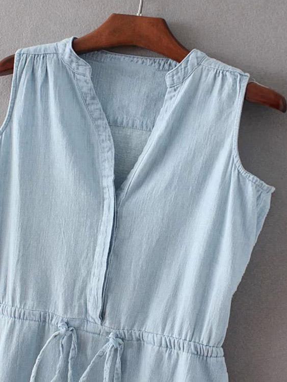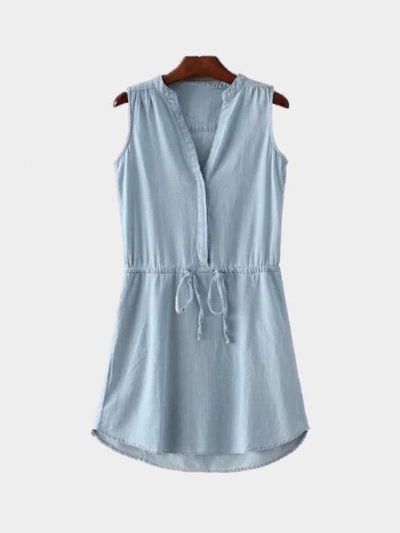 Blue Sleeveless Curved Hem Midi Dress