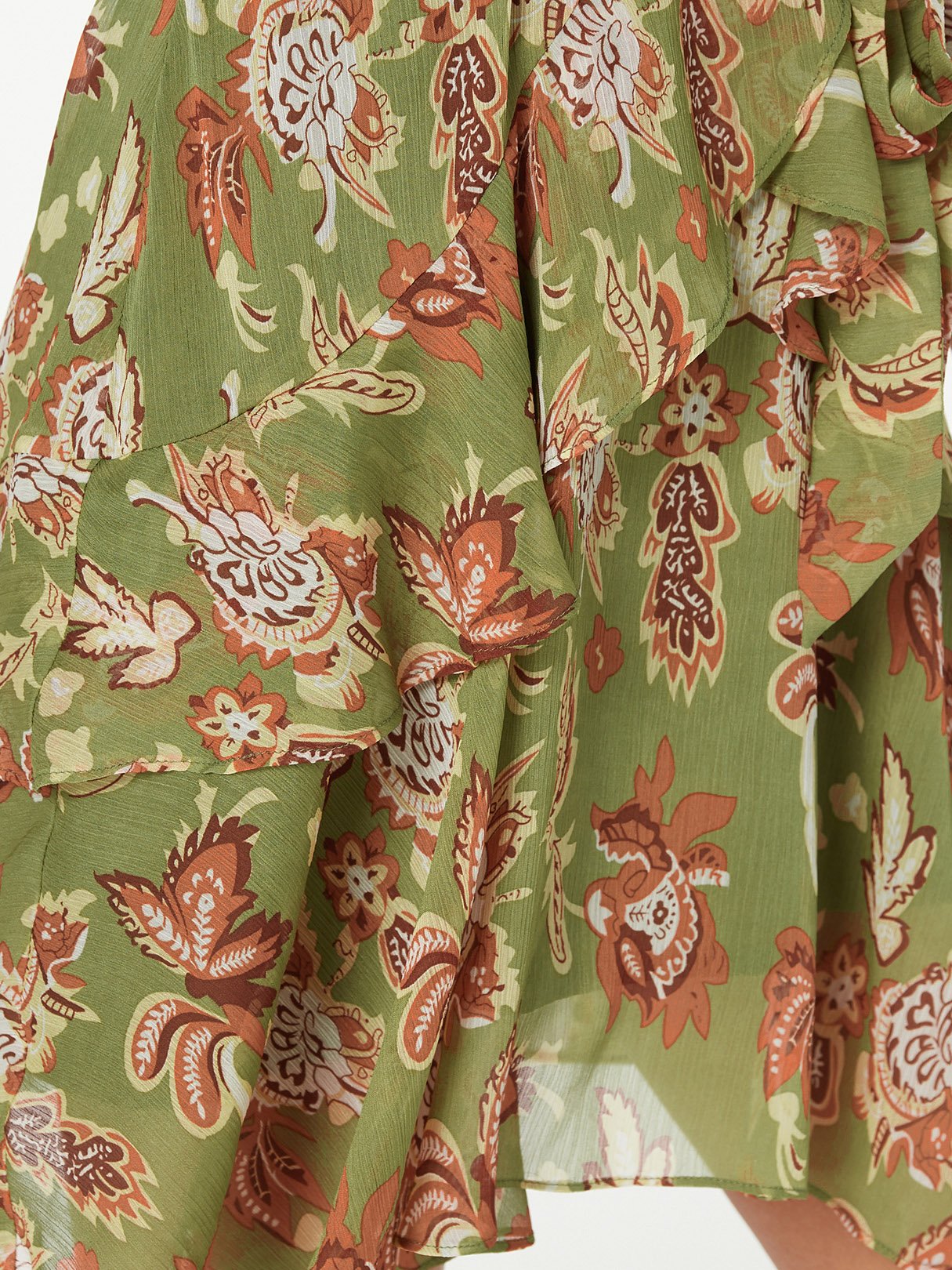 Green Deep V Neck Sleeveless Floral Print Self-Tie Wrap Flounced Hem Dress - Green / S is backordered and will ship as soon as it is back in stock.