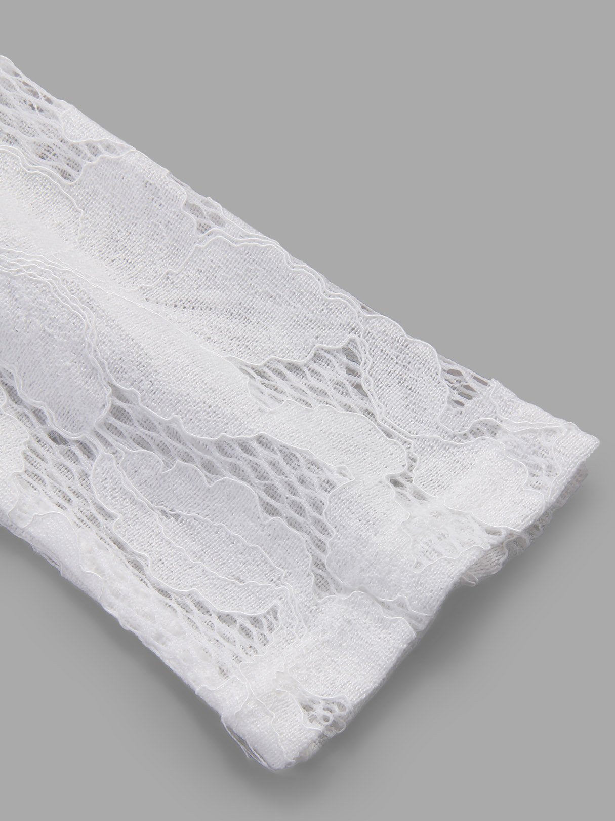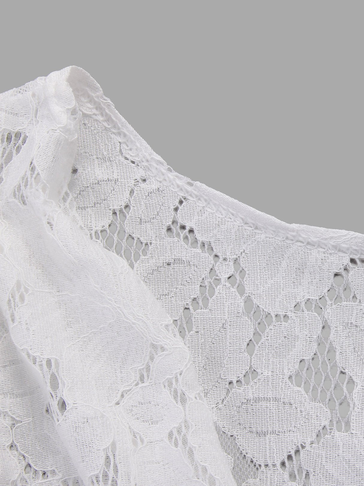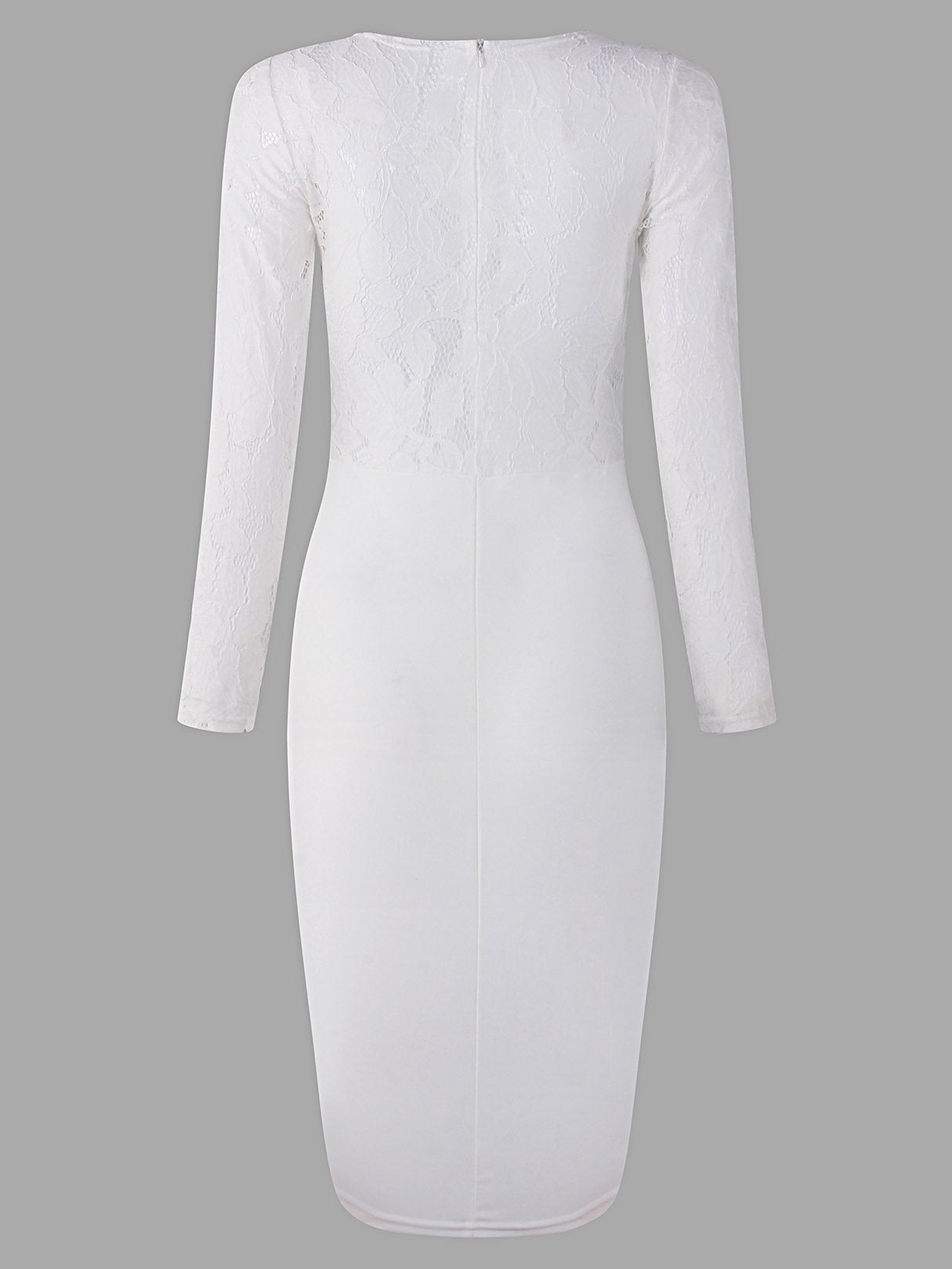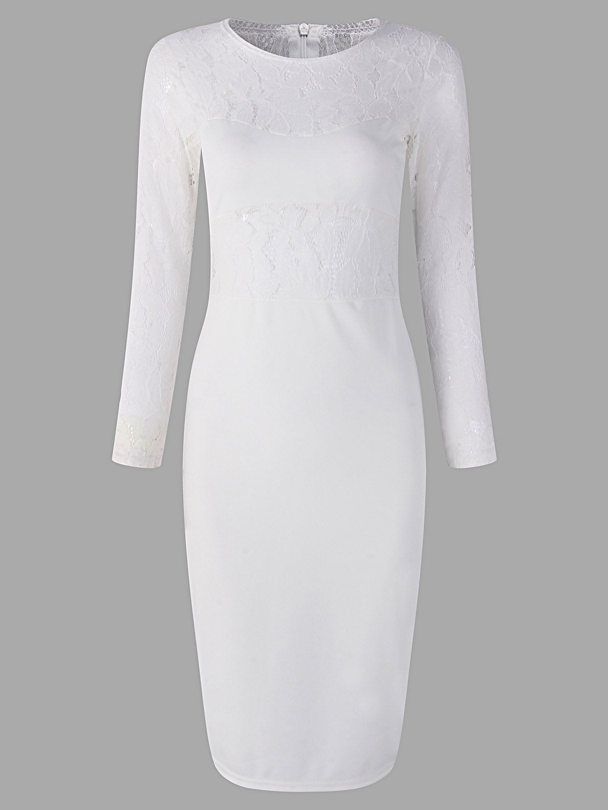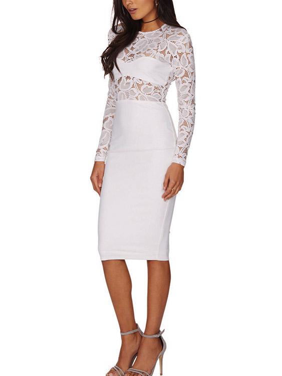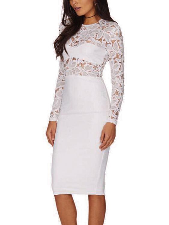 White Round Neck Long Sleeve Lace Zip Back Hollow Midi Dress