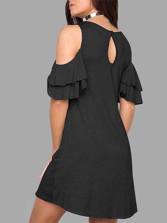 Black Cold Shoulder Mini Dress - Black / S is backordered and will ship as soon as it is back in stock.