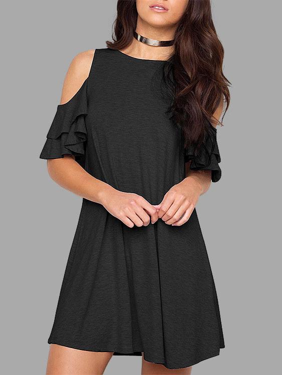 Material:Cotton,PolyesterNeckline:Cold ShoulderSeason:Spring,SummerStyle:Casual StyleLength:MiniFit:Loose Fit