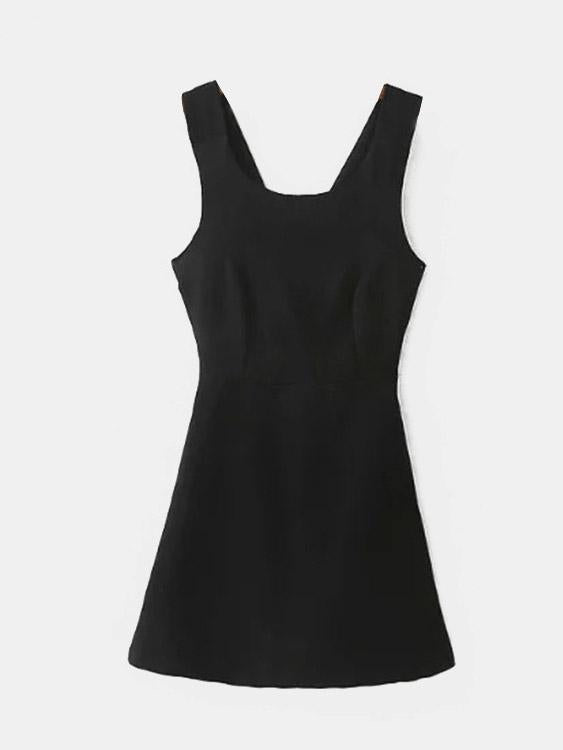 Black Crew Neck Sleeveless Mini Dresses