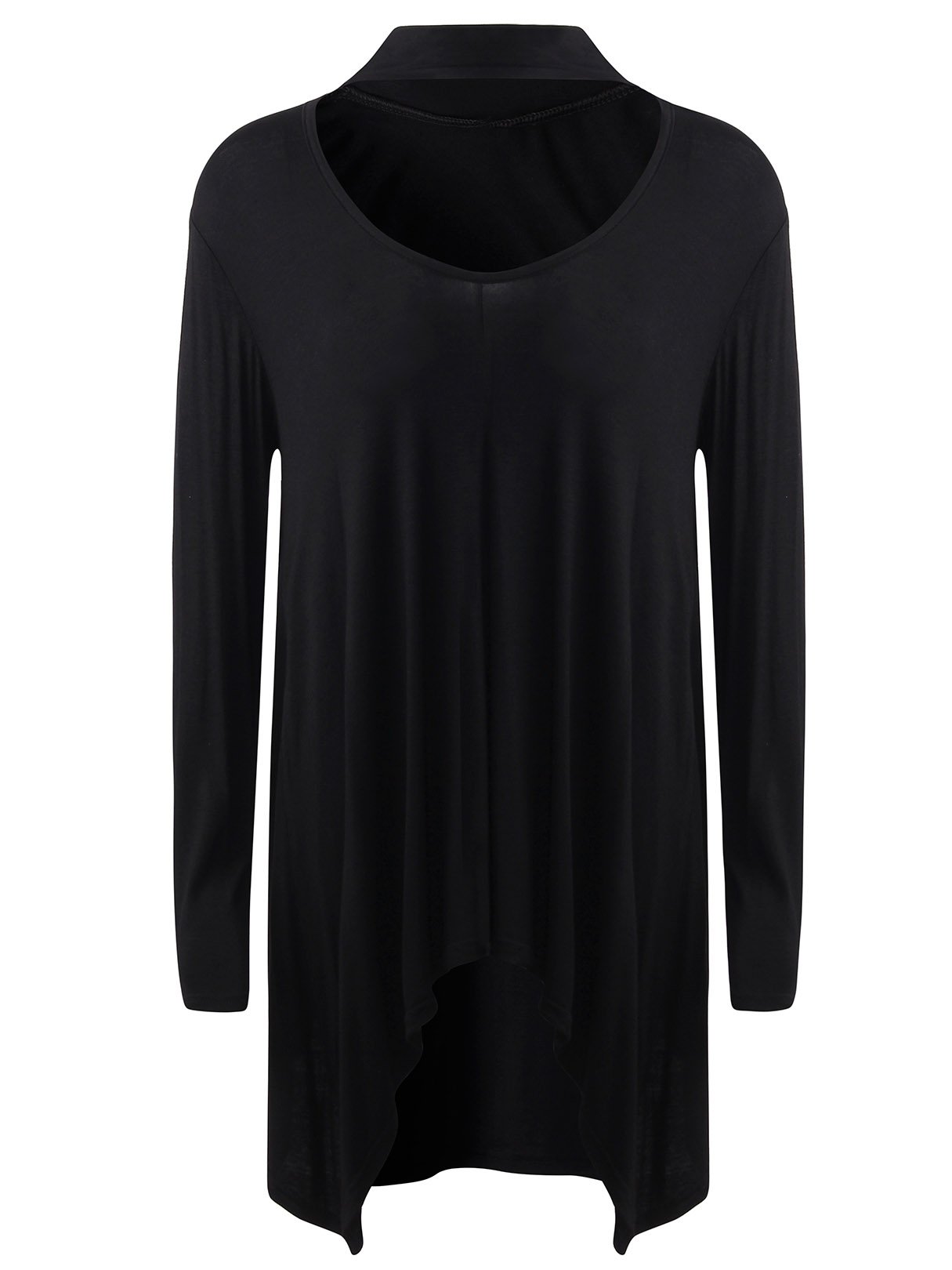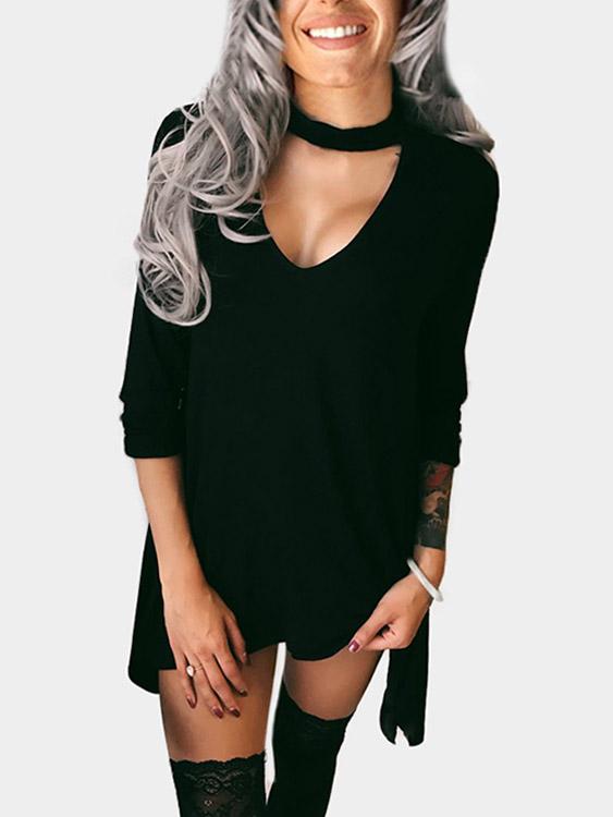 Material:Cotton,PolyesterNeckline:Halter,Deep V NeckSeason:Spring,Summer,Autumn,WinterSleeves:Long SleevesPattern:PlainStyle:Casual StyleDetail:Cut OutHem Design:Irregular HemLength:MiniFit:Regular Fit