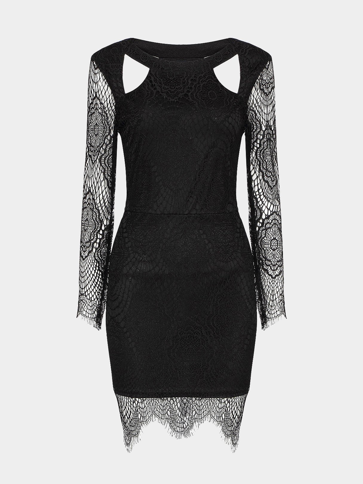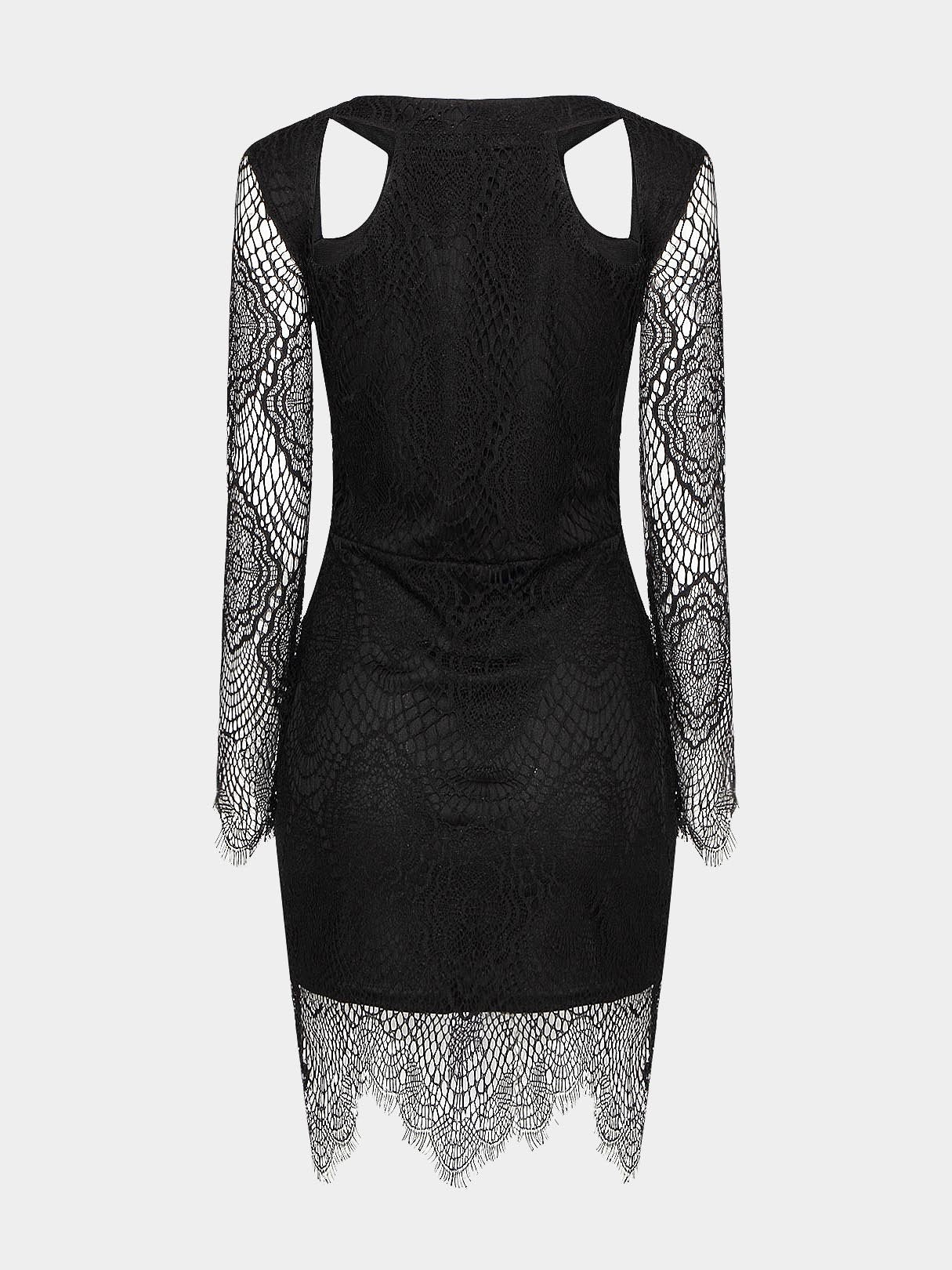 Black Lace Crochet Mini Dress - Black / S is backordered and will ship as soon as it is back in stock.