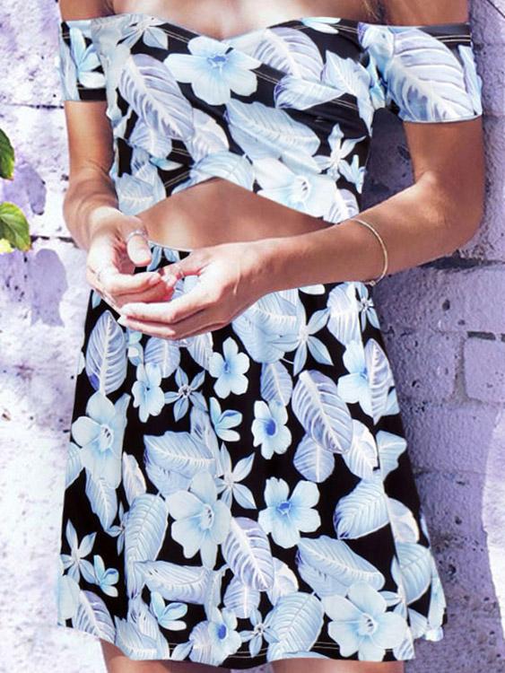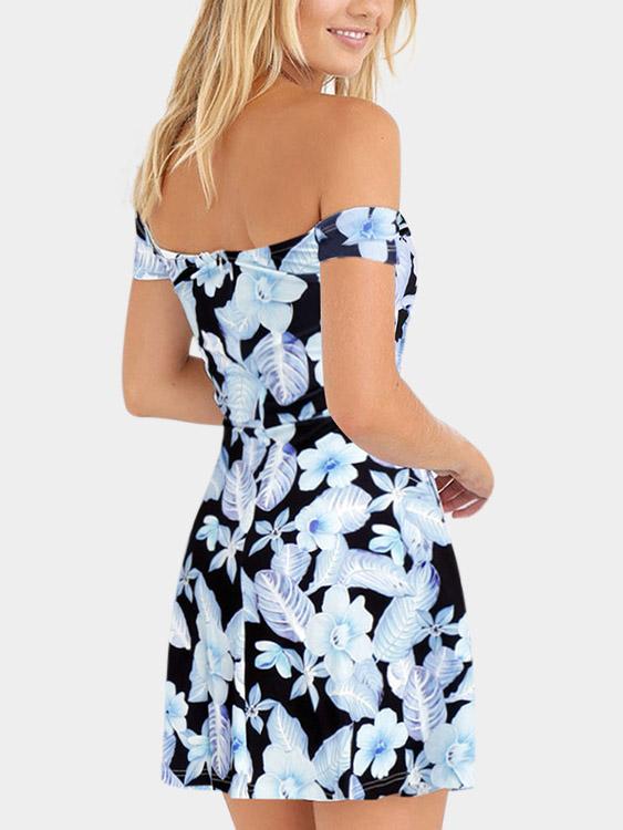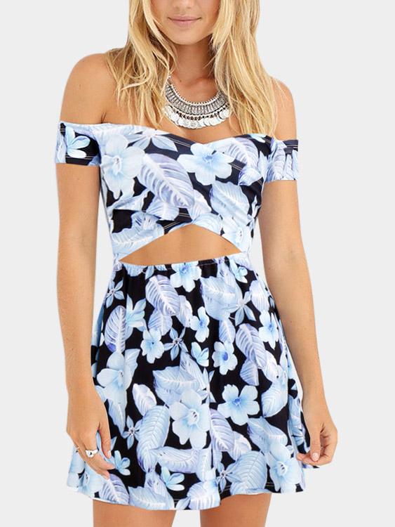 Material:PolyesterNeckline:Off The ShoulderSeason:Spring,Summer,Autumn,WinterSleeves:Short SleevesPattern:Floral PrintStyle:Vacation Style,Sexy StyleDetail:Crossed Front Design,Cut OutWaist Design:High-WaistedLength:MiniFit:Regular Fit